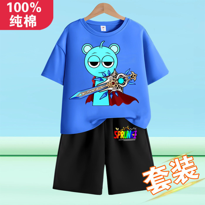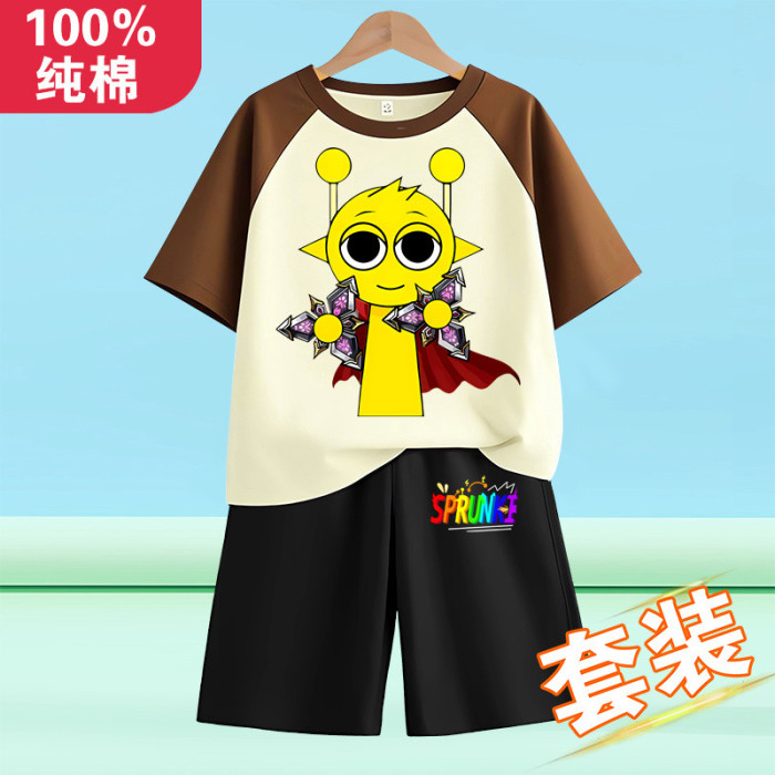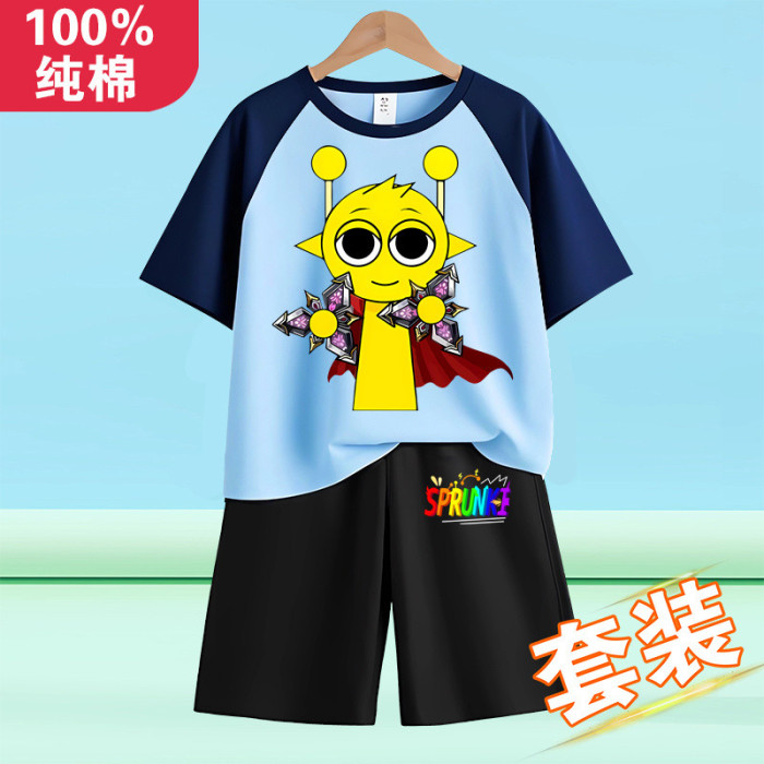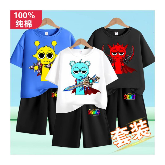 節奏盒子兒童短袖t恤sprunki音樂盒子男童衣服一套純棉夏季套裝