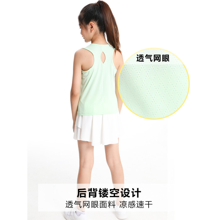 萌格格女童背心短袖無袖網眼速乾運動透氣夏季涼感網球服2025新款
