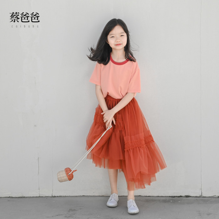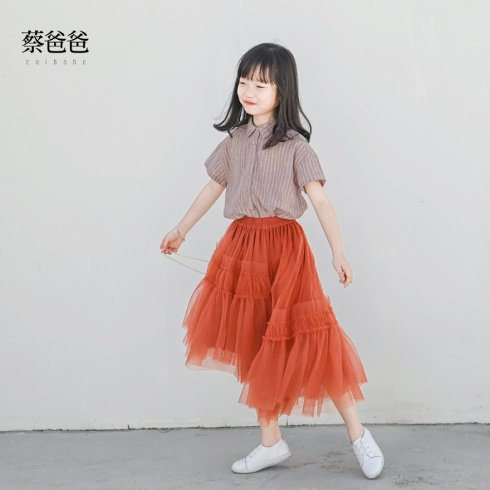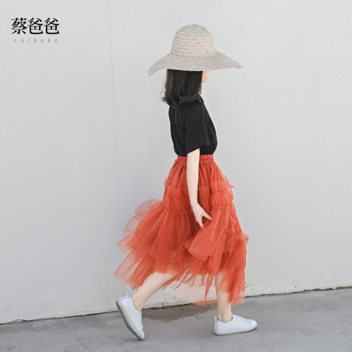 蔡爸爸原創童裝夏裝洋氣女童半身網紗裙不規則三層A字裙子793+801