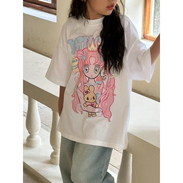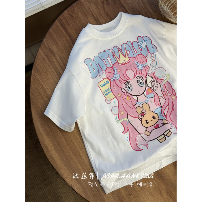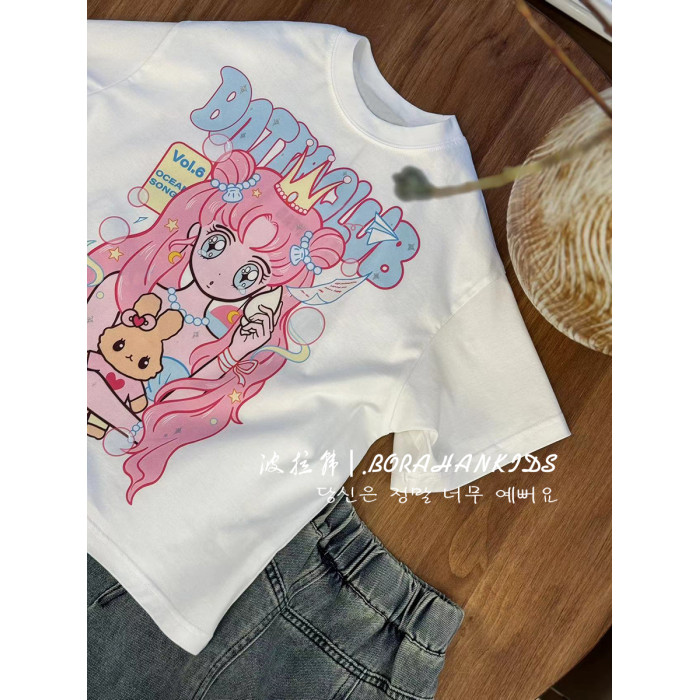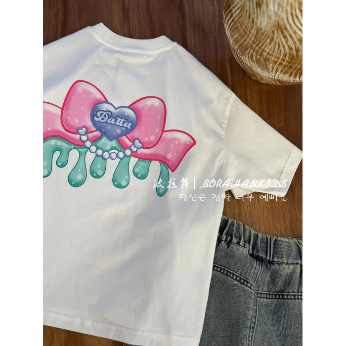 波拉韓童裝女童卡通圖案短袖夏2025新款女孩甜美上衣兒童洋氣T恤