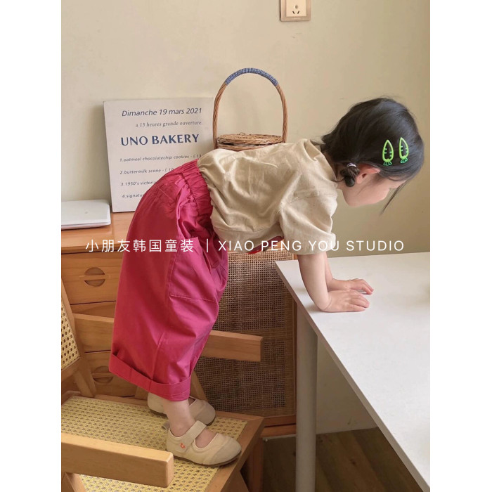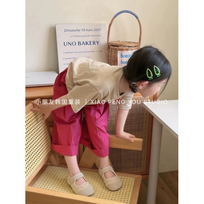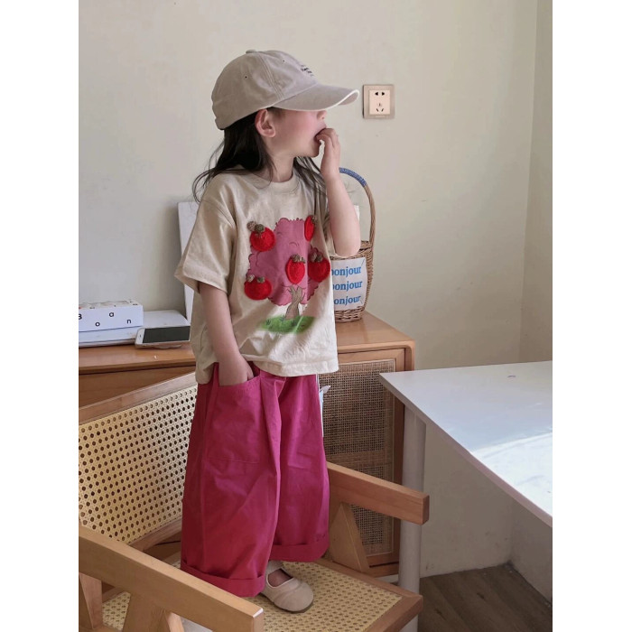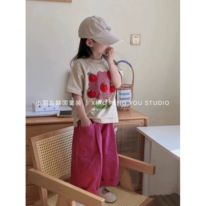 女童夏款短袖套裝2024女寶純棉寬松T恤+火龍果長褲上衣褲子兩件套