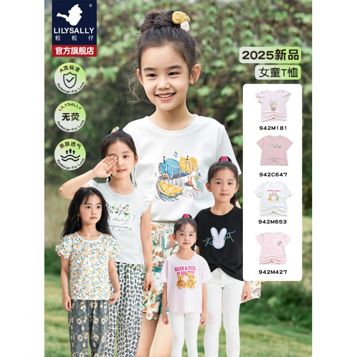 粒粒仔兒童短袖女童t恤打底衫上衣夏裝可愛時尚2025新品A百搭清新