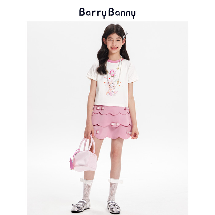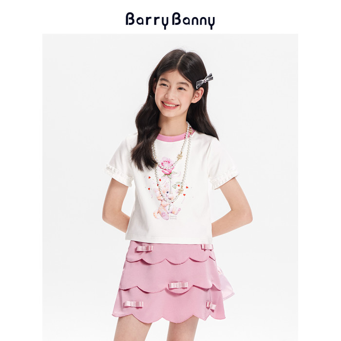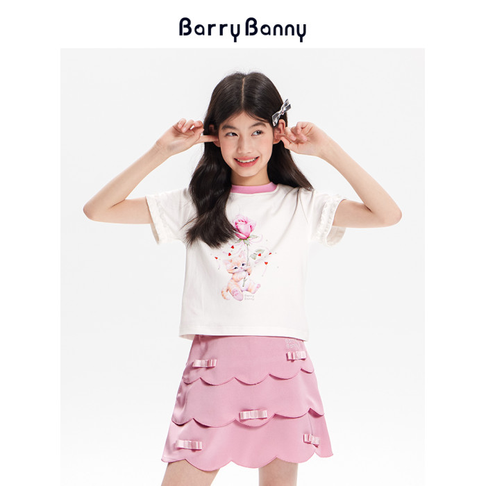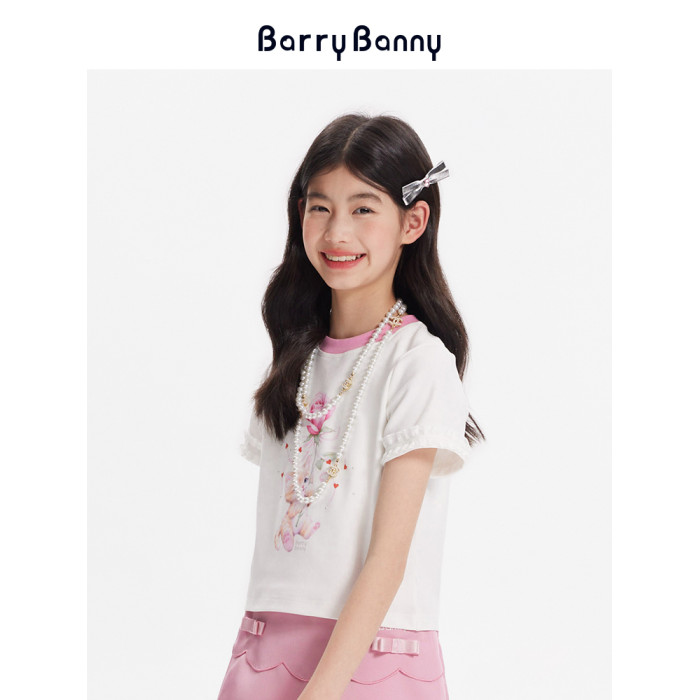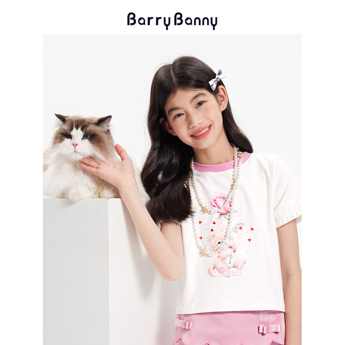 BarryBanny女童貓咪純棉短袖T恤2025夏款印花圓領吸溼透氣上衣