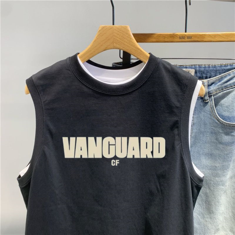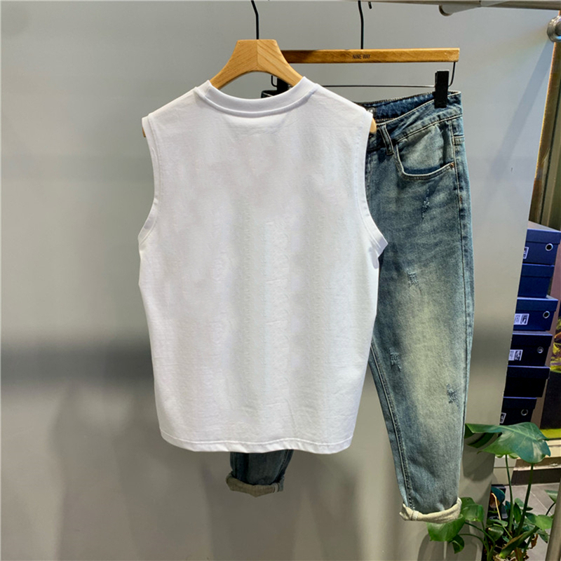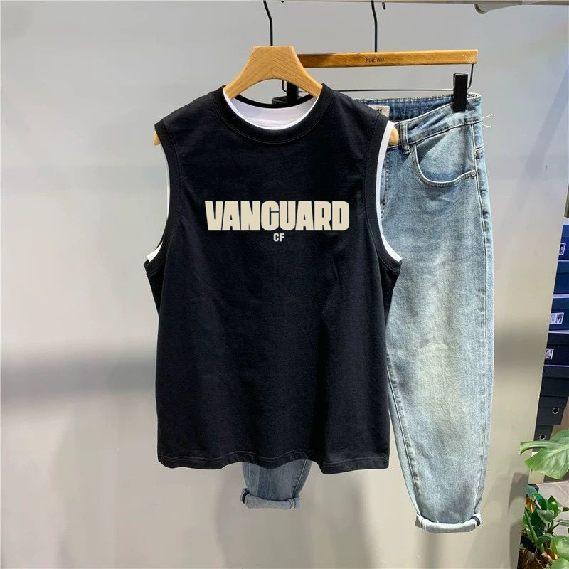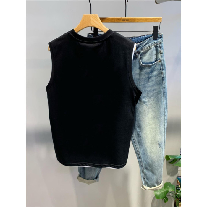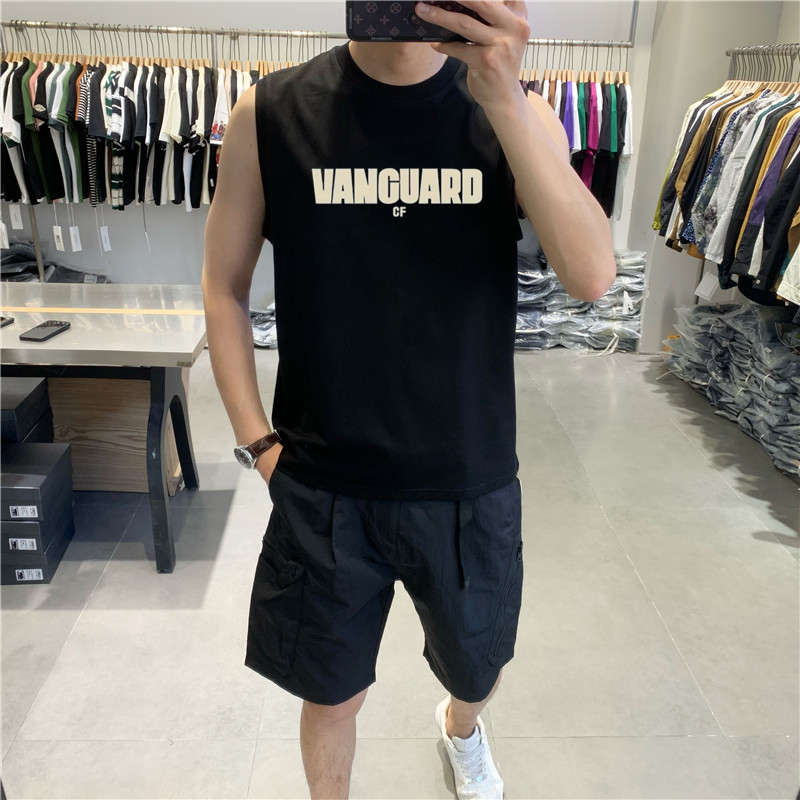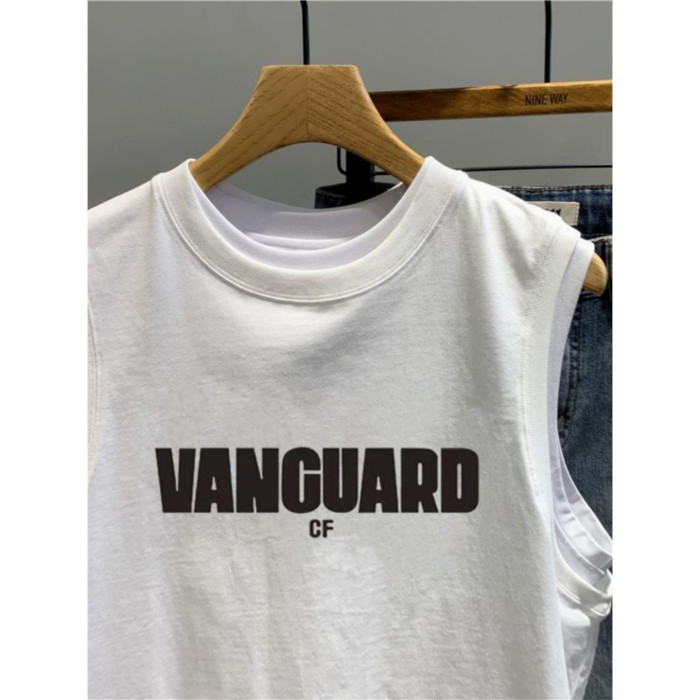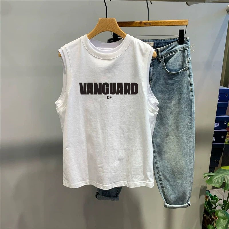 2025夏季男士純棉無袖背心簡約字母印花休閒運動坎肩透氣百搭汗衫