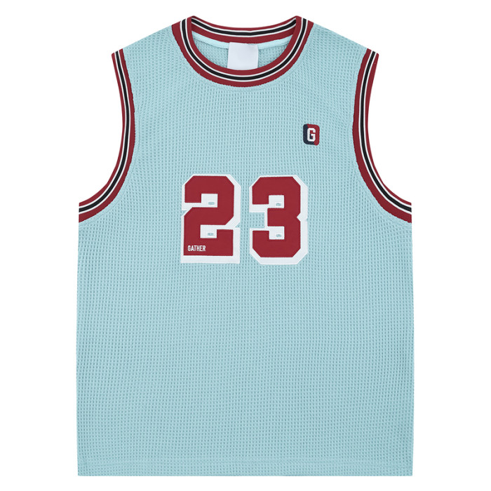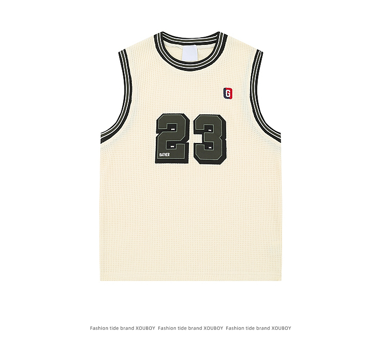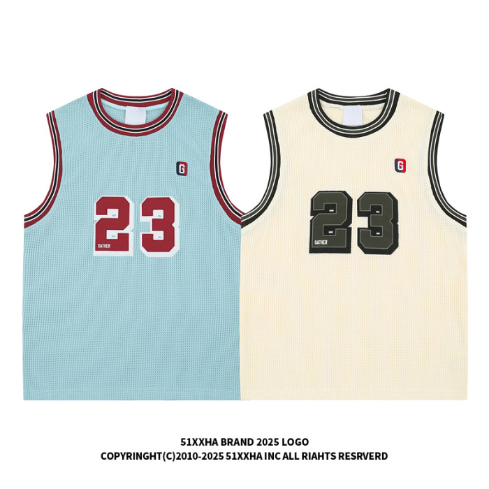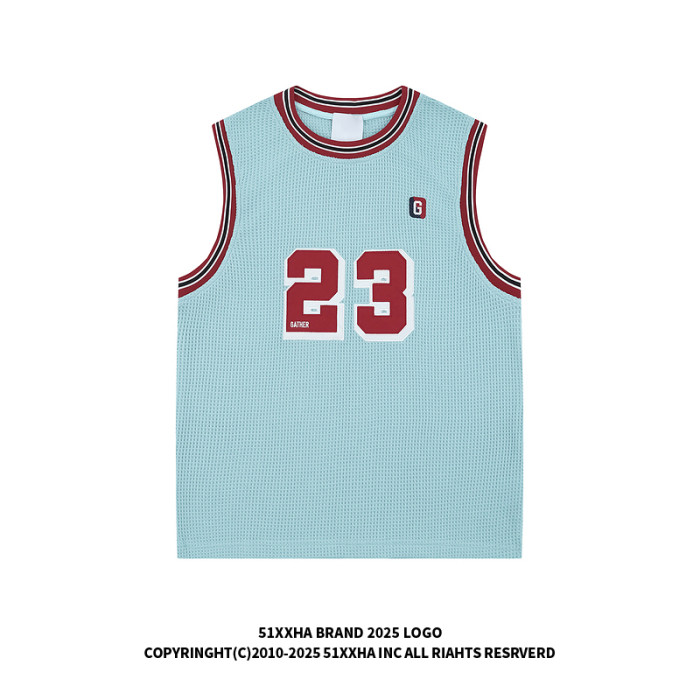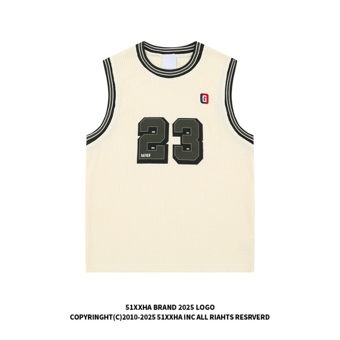 51嘻哈美式復古vibe條紋拼接23號球衣背心夏季針織籃球運動坎肩男