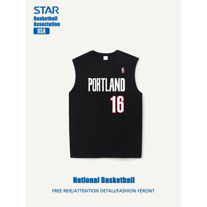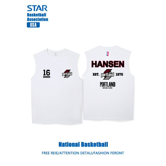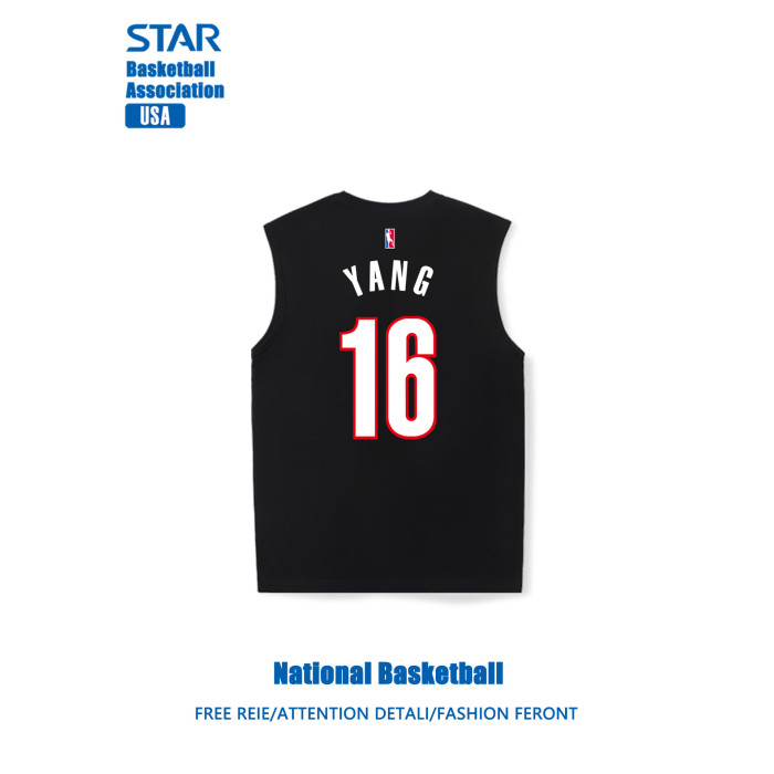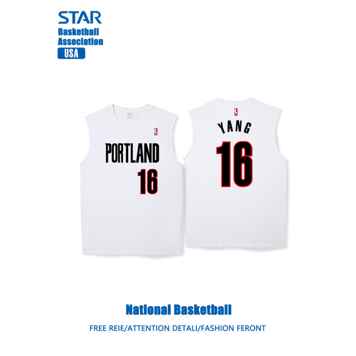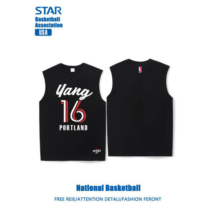 開拓者隊楊瀚森球衣美式籃球投籃訓練背心無袖T恤男夏季純棉上衣