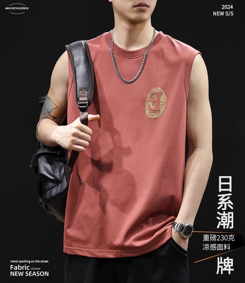 冰感汗背心男夏季薄款寬松坎肩無袖運動健身大碼潮牌短袖t恤男款