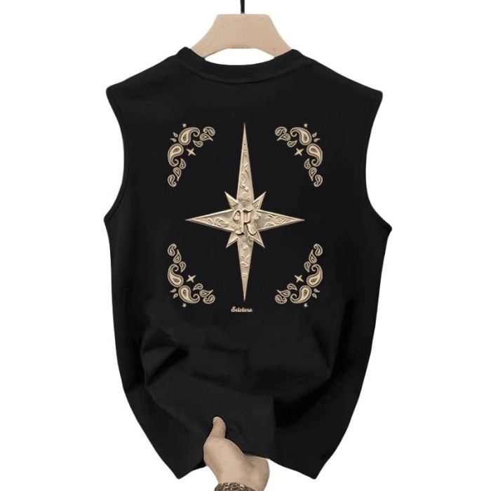 倉石一樹潮牌美式純棉無袖背心男士夏季寬松休閒運動坎肩打底上衣