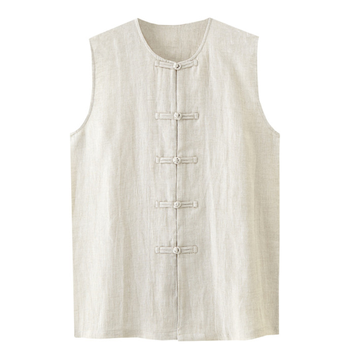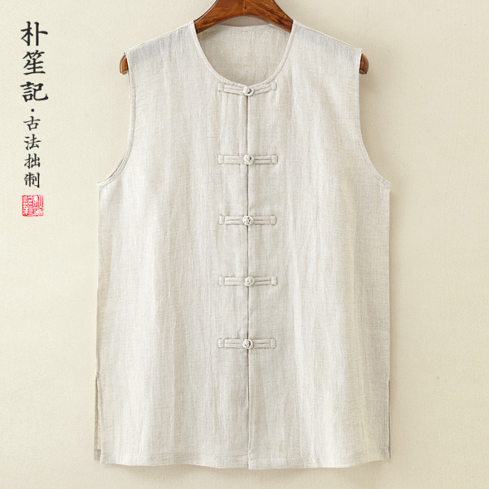 原創馬褂男士亞麻背心夏季t恤寬松中式汗衫薄款禪服居士茶服坎肩