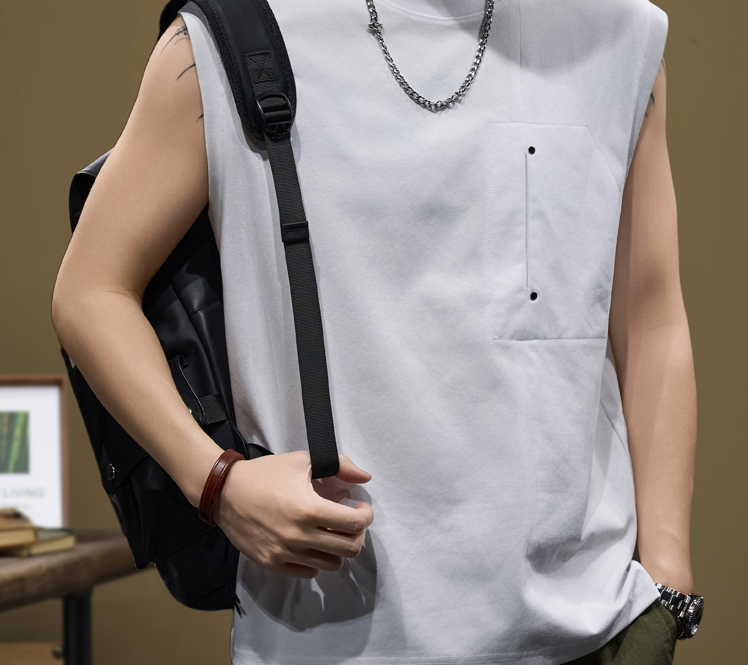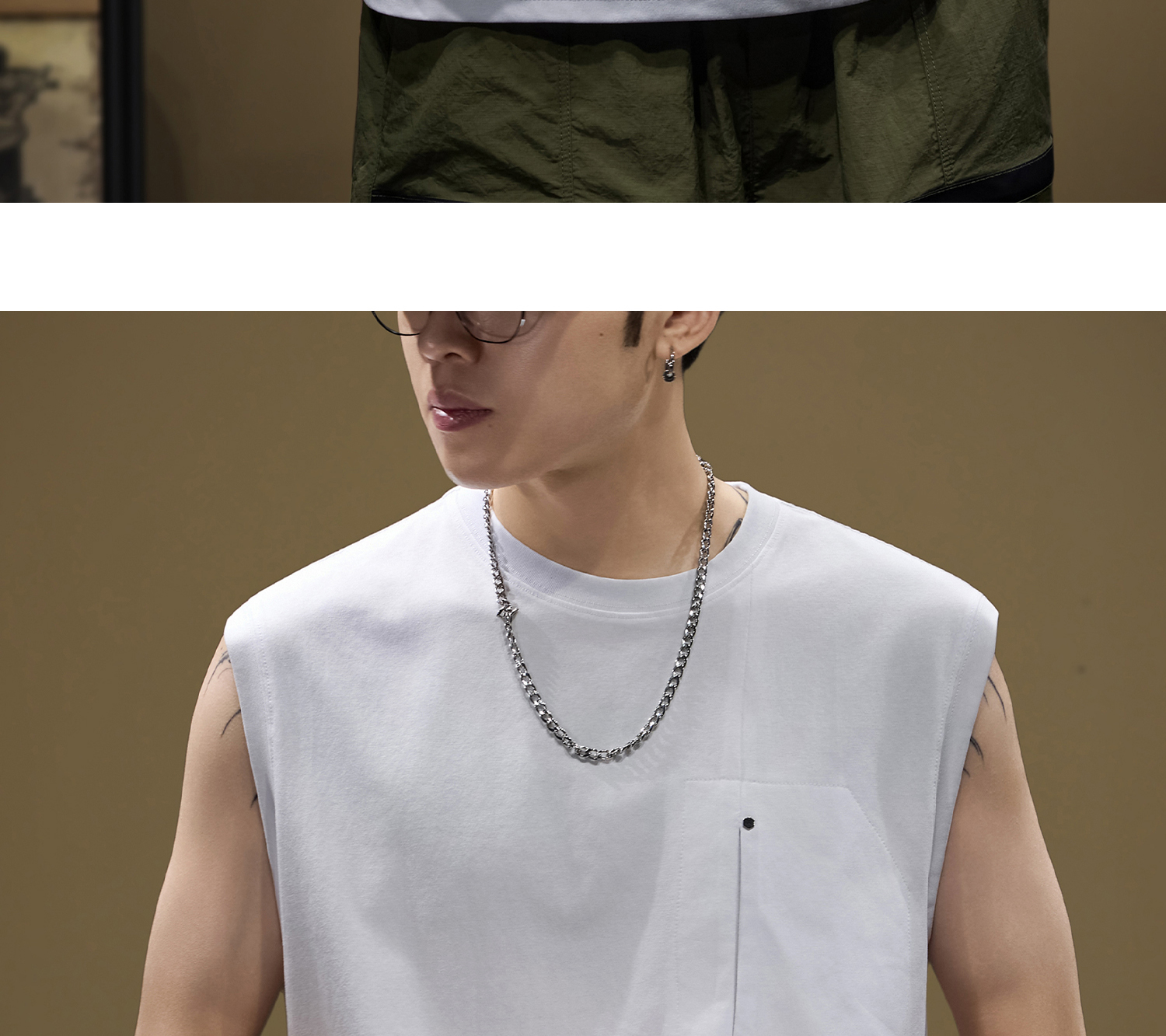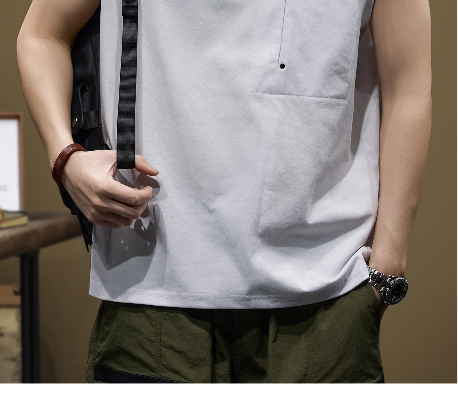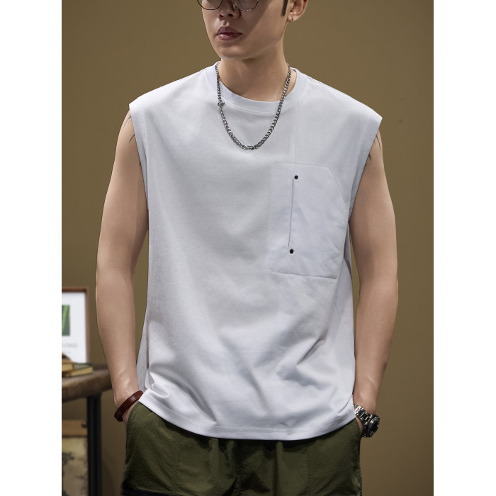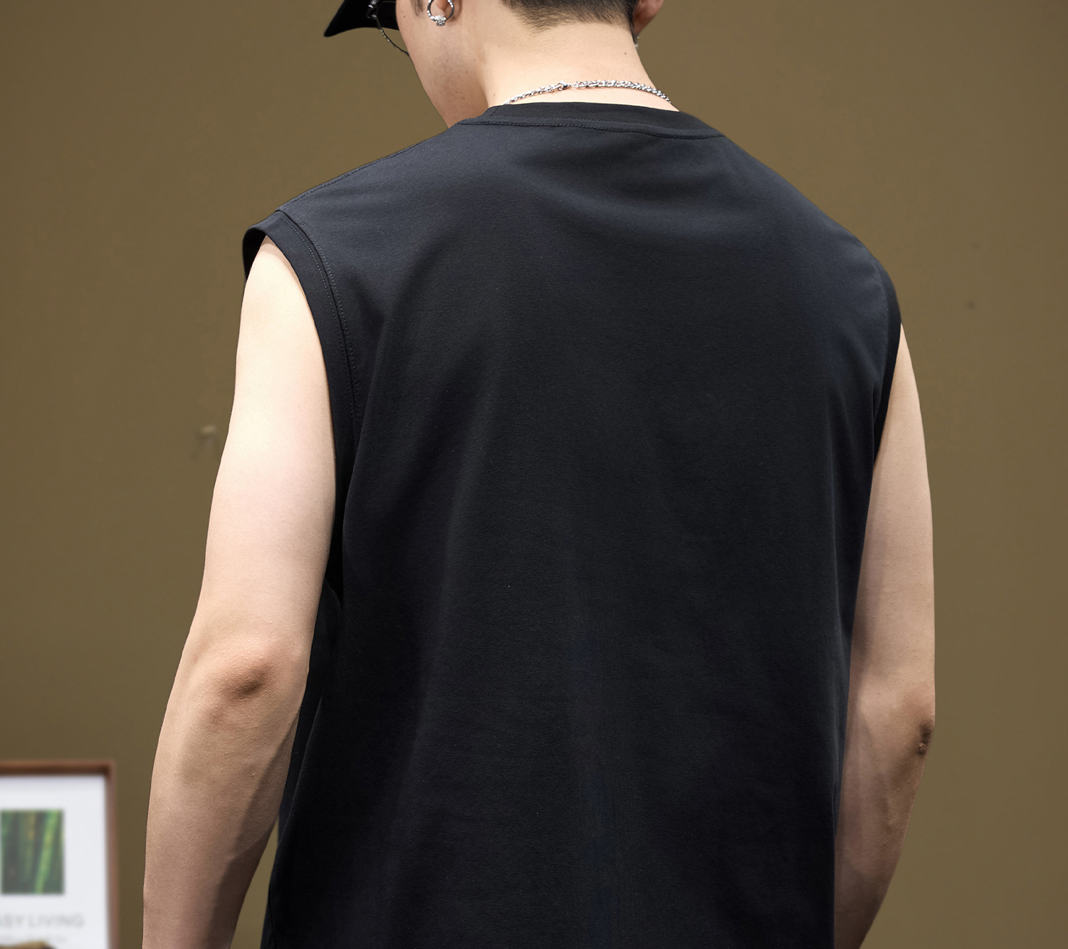 美式拼接純色背心T恤男士夏季高級圓領休閒外穿籃球健身運動背心