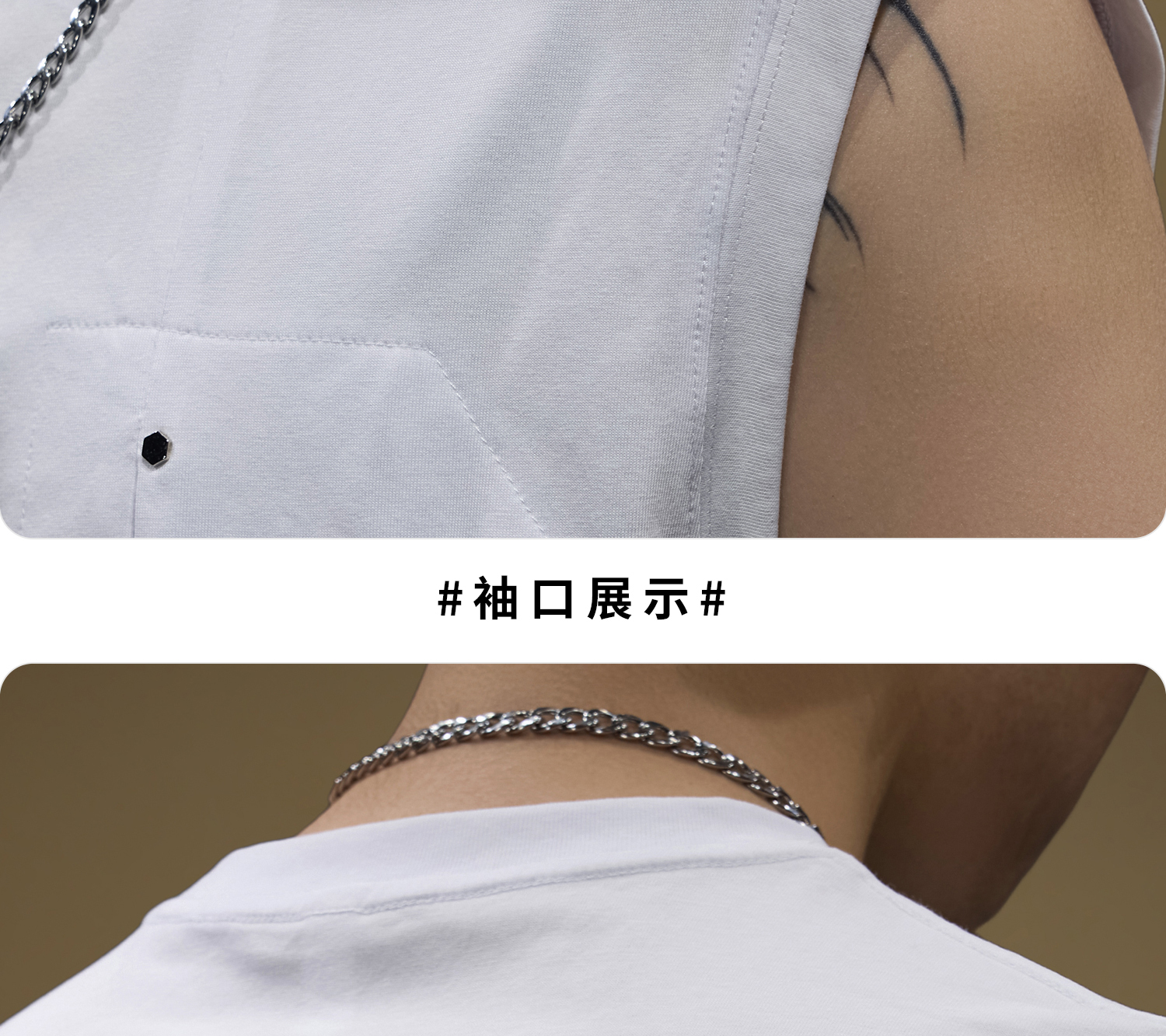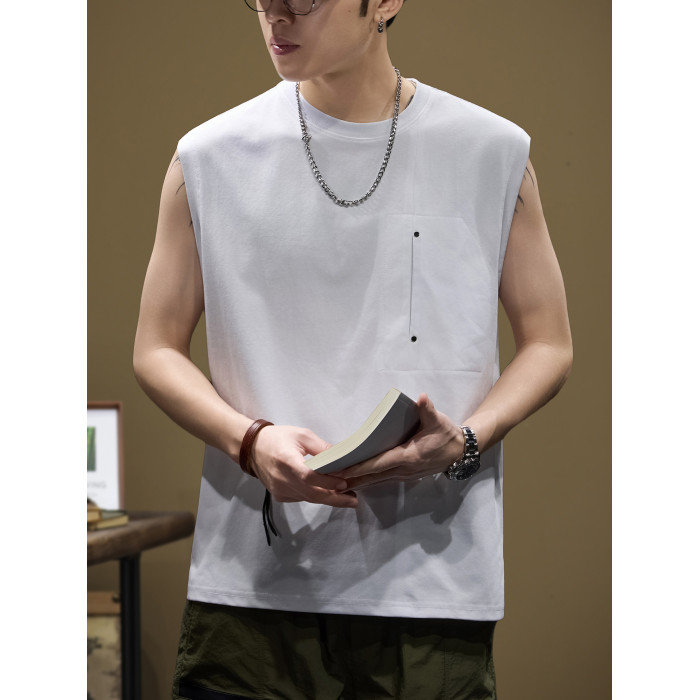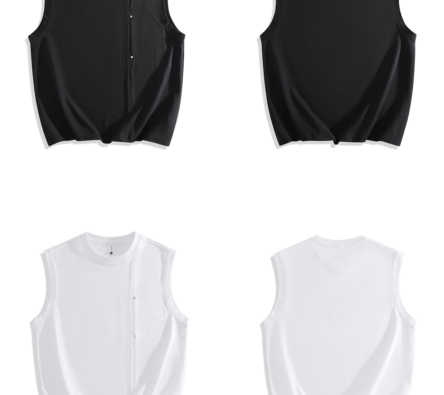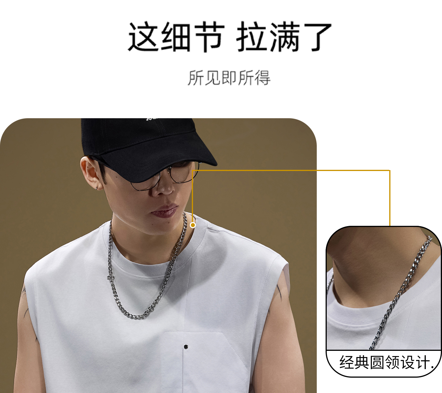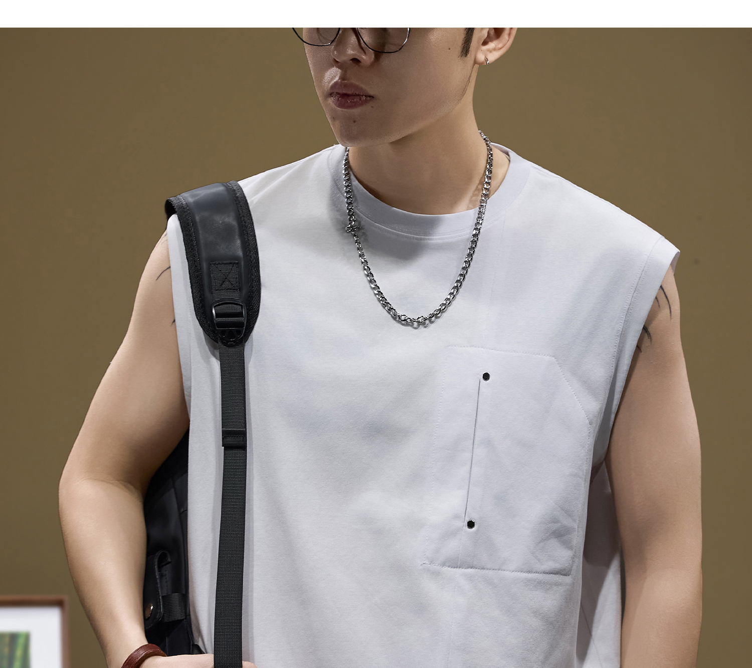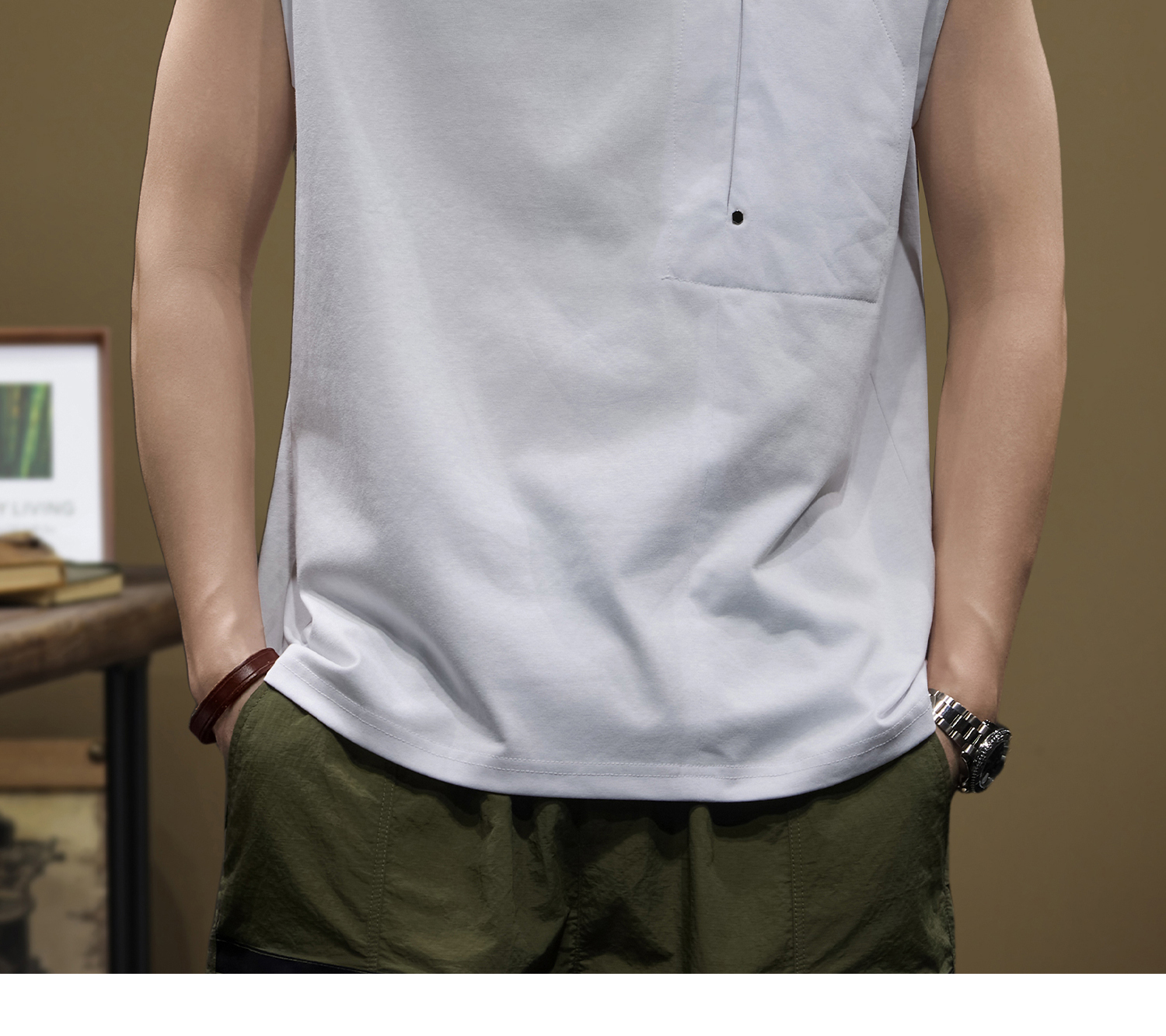 美式拼接純色背心T恤男士夏季高級圓領休閒外穿籃球健身運動背心