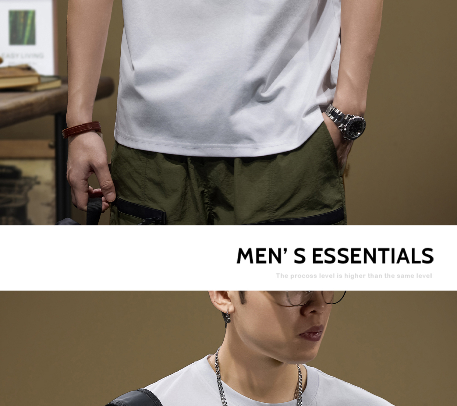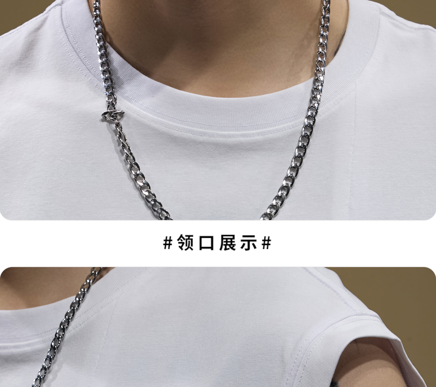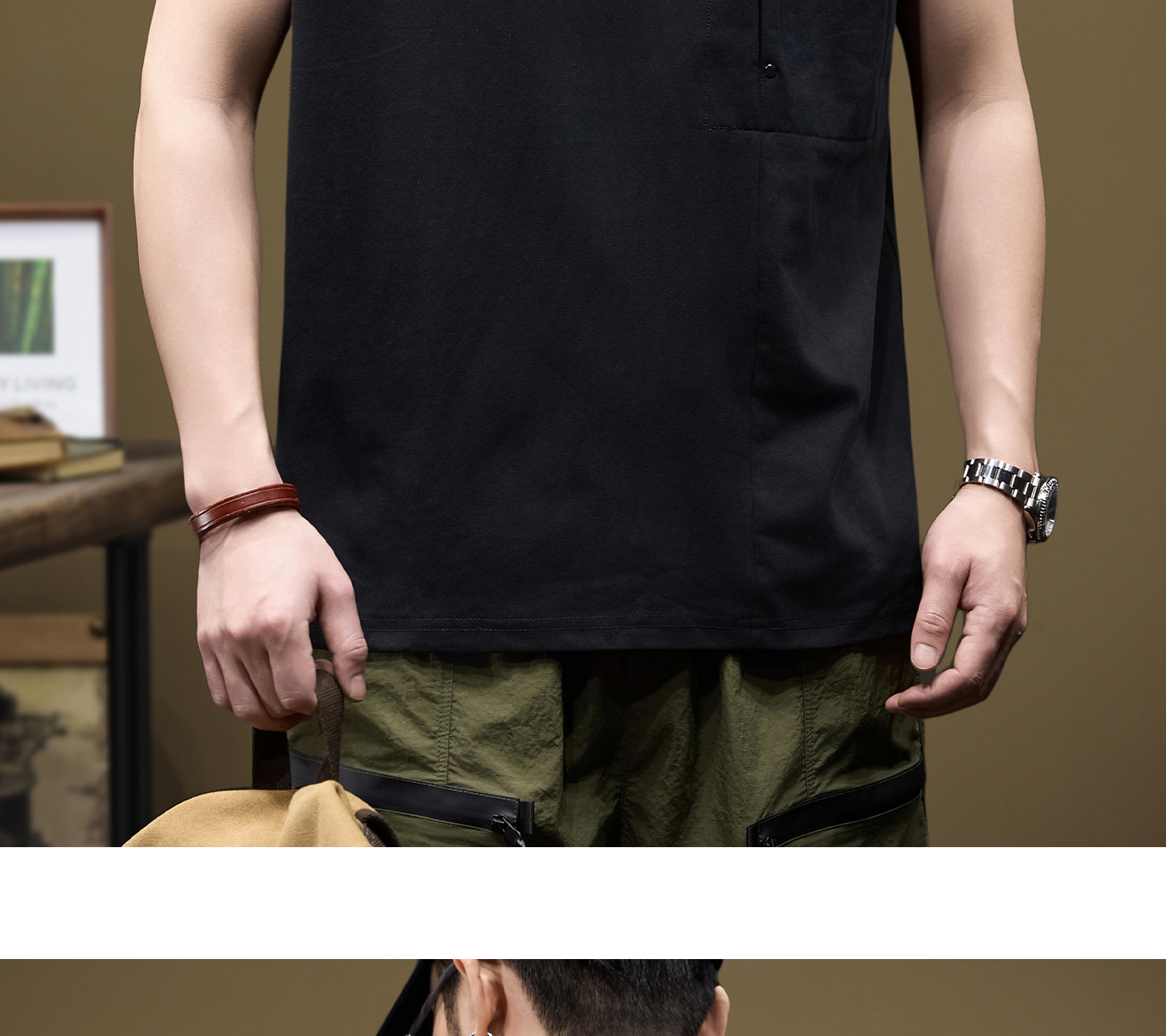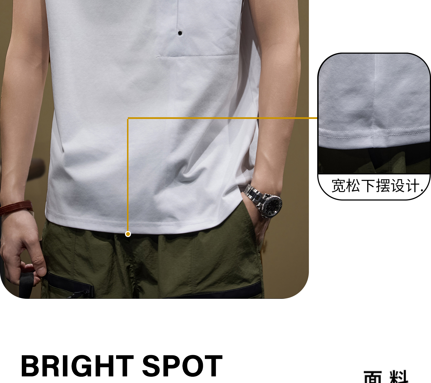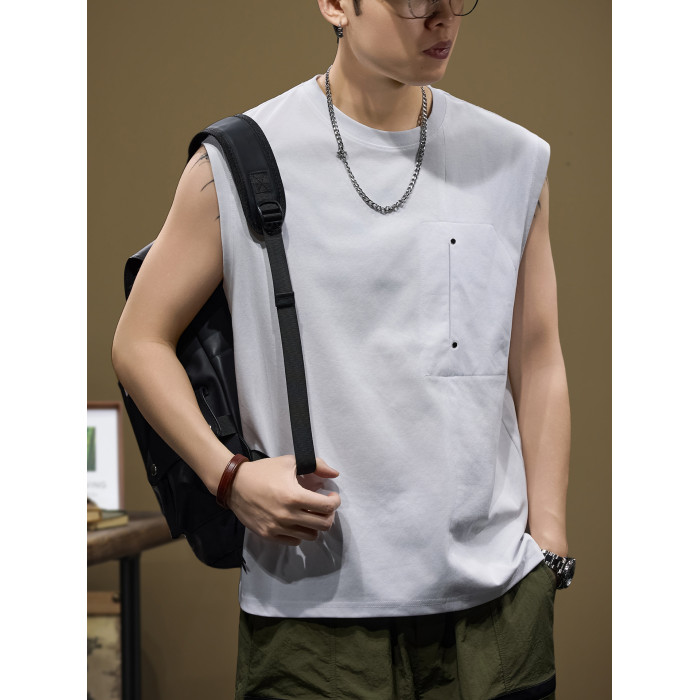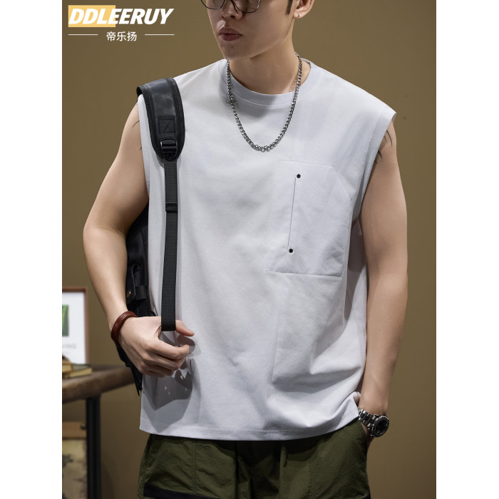 美式拼接純色背心T恤男士夏季高級圓領休閒外穿籃球健身運動背心