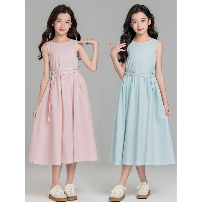 女童裙子夏裝2025新款收腰韓版大童女孩法式氣質背心裙無袖連衣裙