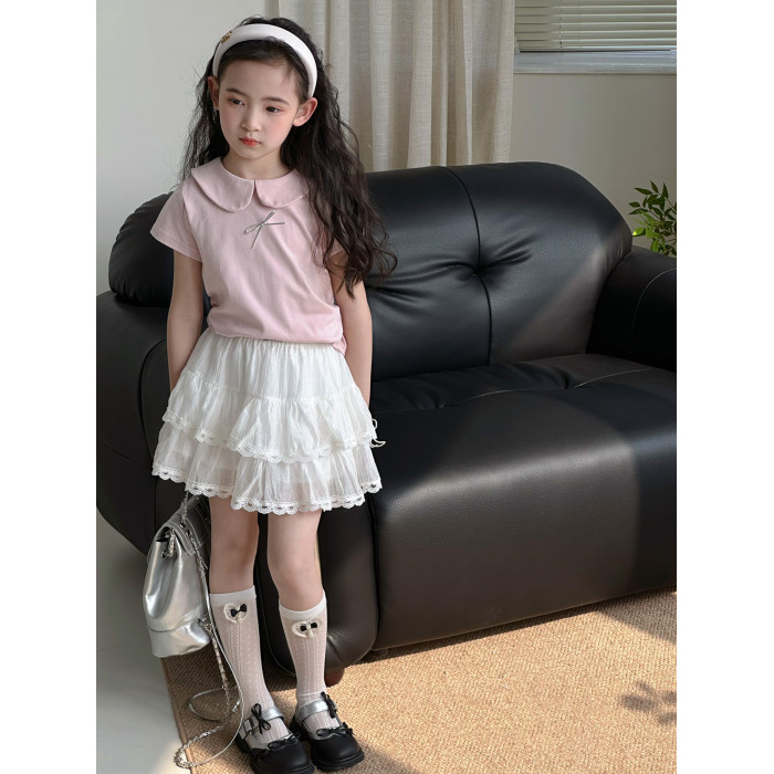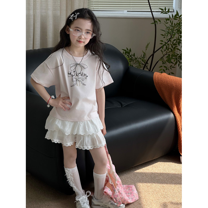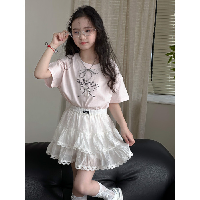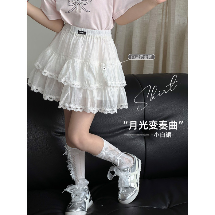 女童半身裙2025夏季新款兒童洋氣短裙中大童蕾絲裙韓版休閒裙子