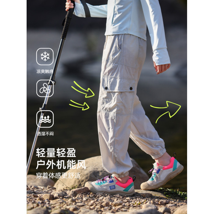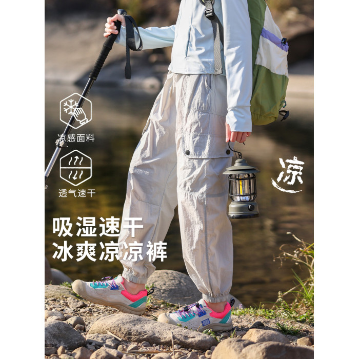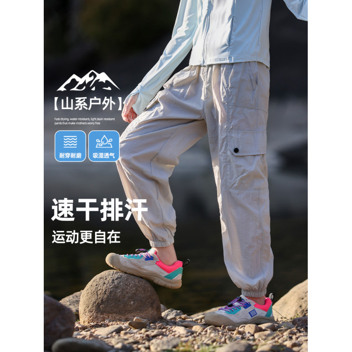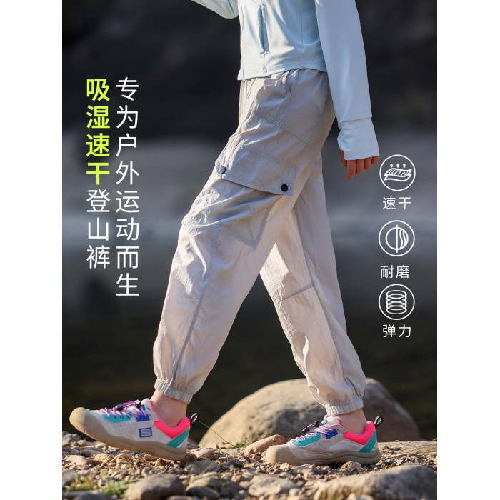 女童速乾褲2025新款夏季薄款兒童運動冰絲褲子戶外防蚊長褲女大童