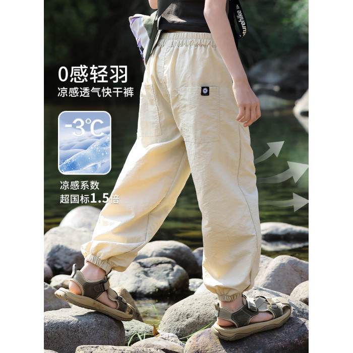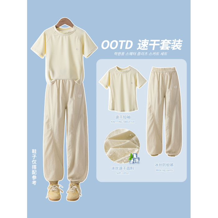 女童運動套裝兒童徒步冰絲涼感防蚊褲速乾衣登山服女大童薄款爬山
