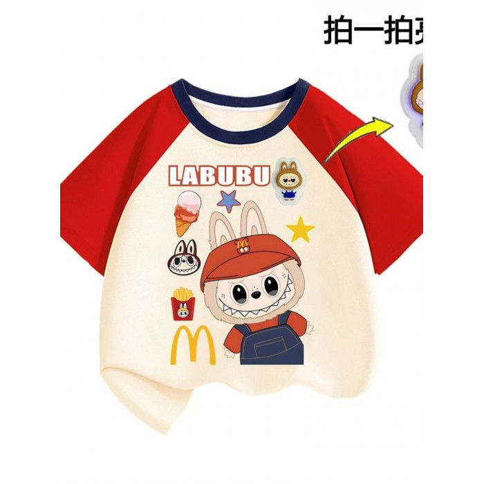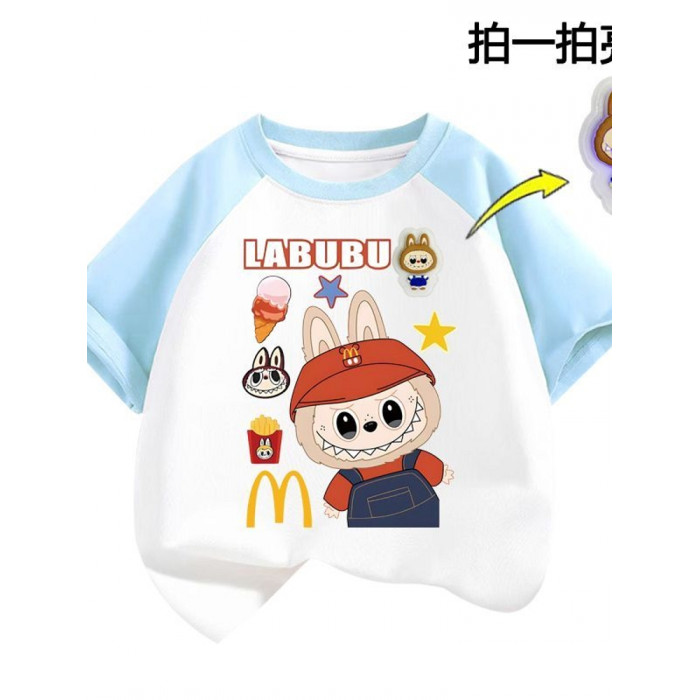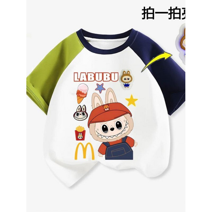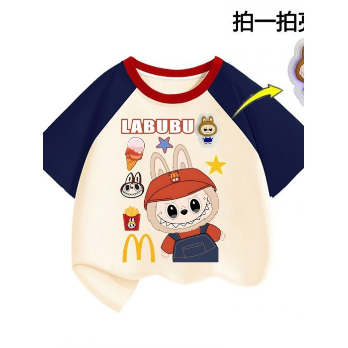 安哼安哼男童拉布布亮燈發光帥氣短袖新款兒童純棉2025夏季痞酷薯