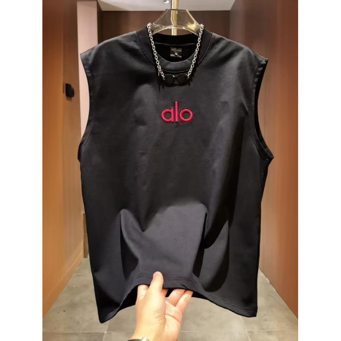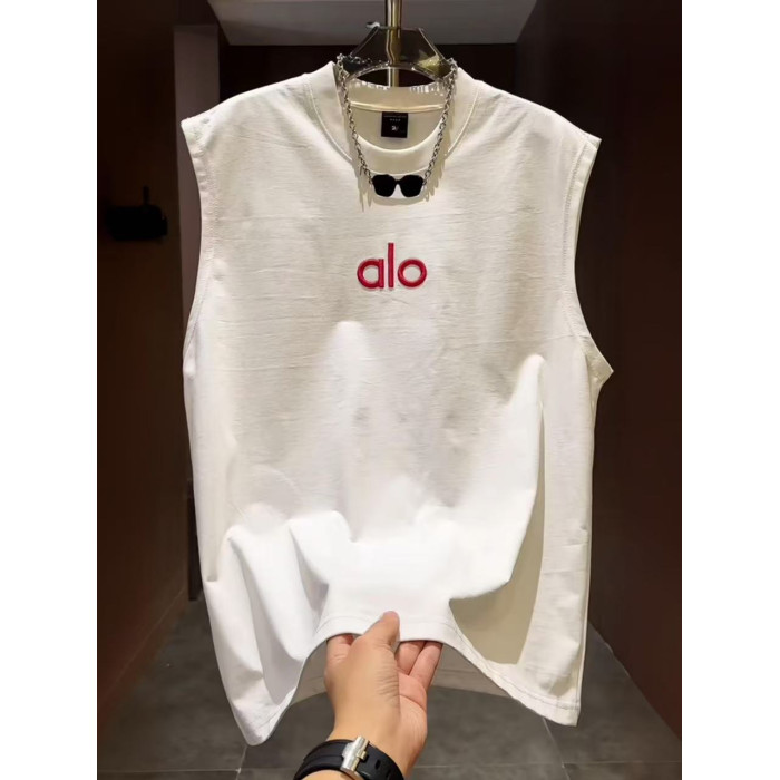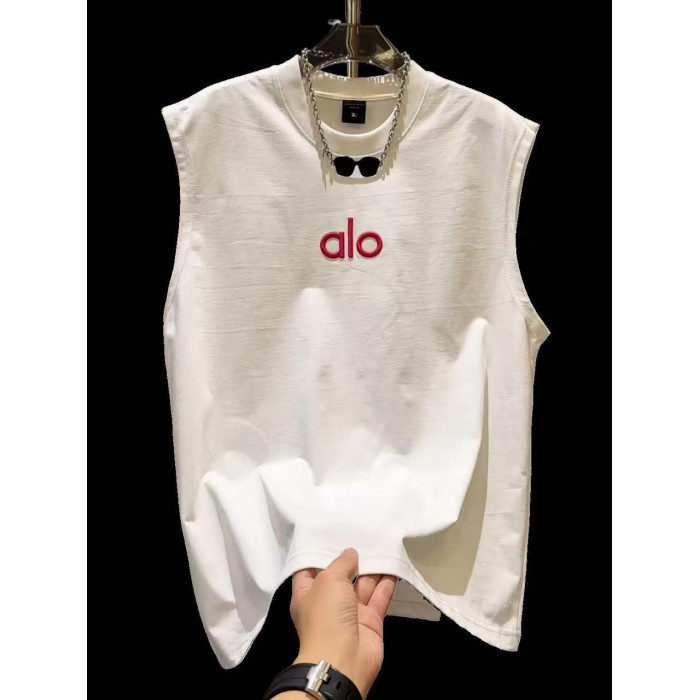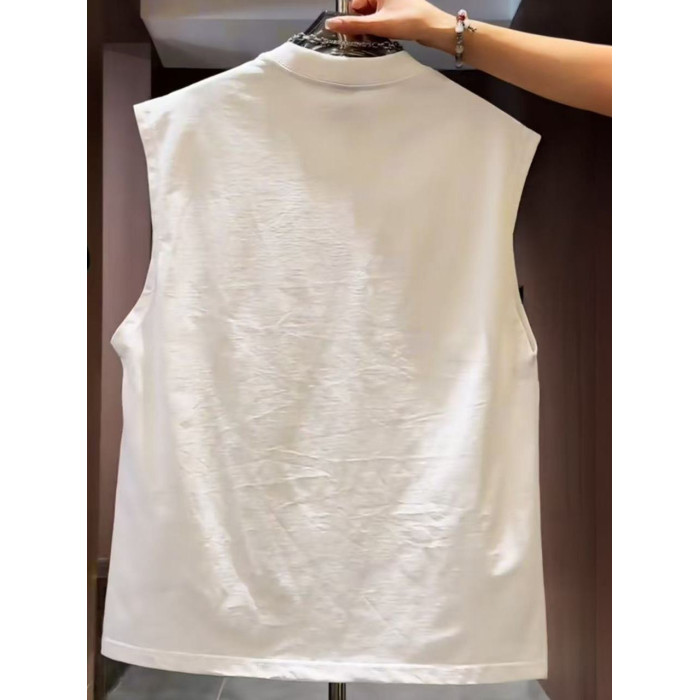 2025年夏季新款男士百搭無袖背心T恤上衣圓領套頭刺綉字母潮流帥