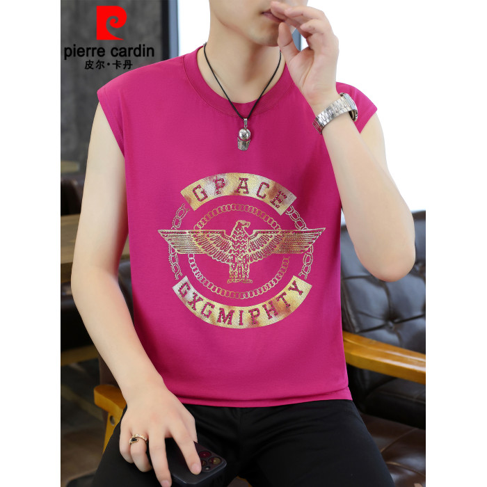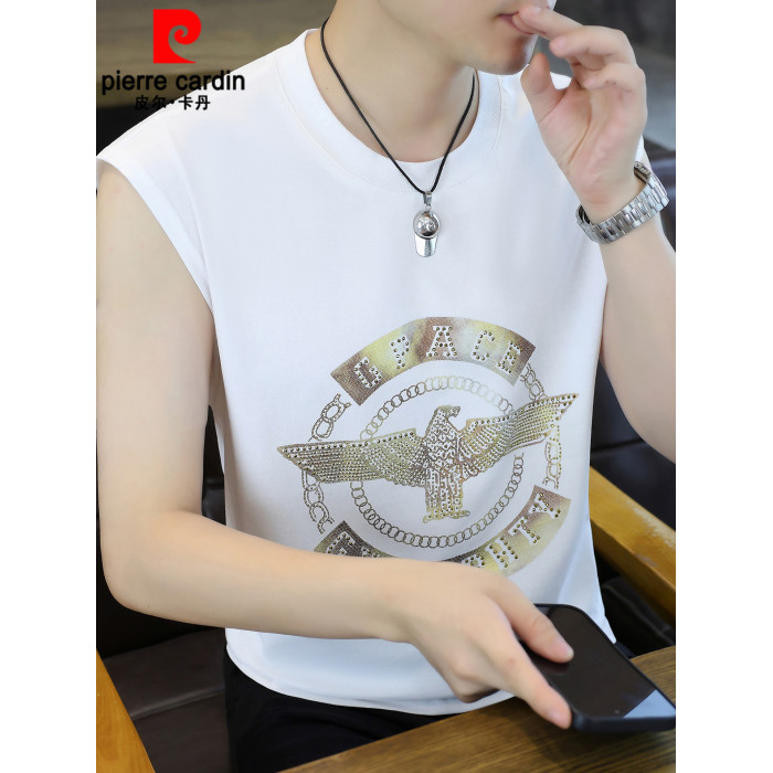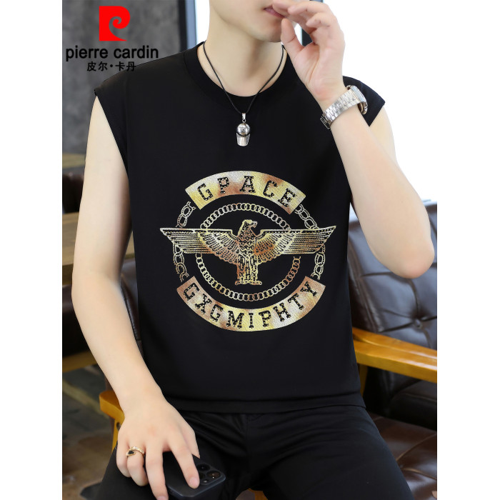 皮爾卡丹時尚個性印花無袖T恤男士夏季潮流休閒背心男款透氣坎肩