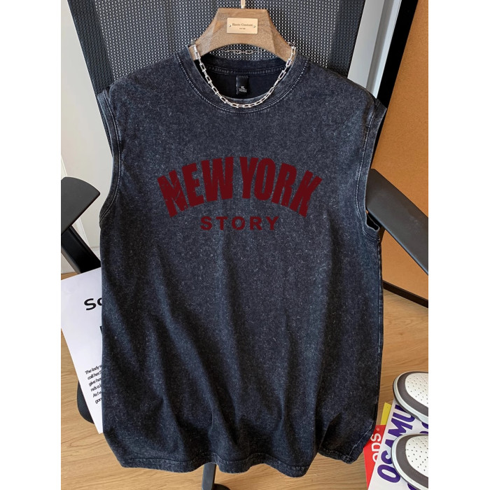 JIAF男生水洗做舊無袖背心潮牌字母寬松涼感T恤痞帥氣青少年上衣