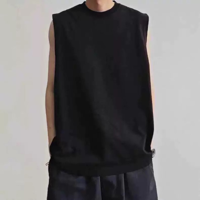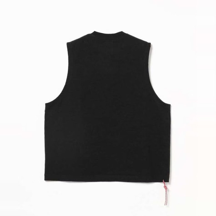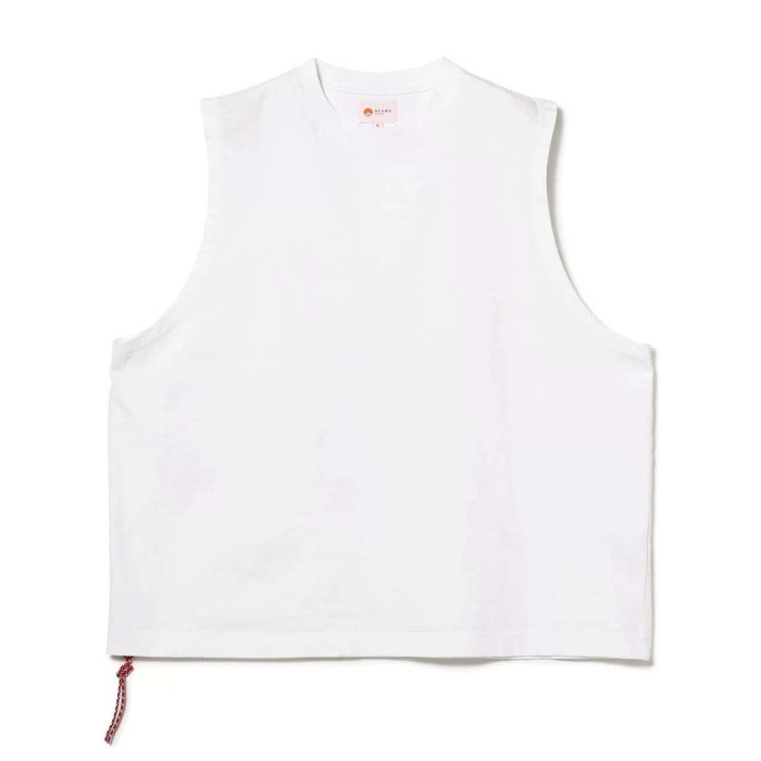 BEAMS JAPAN 25SS日系復古寬松純色紅繩無袖坎肩運動背心圓領T恤