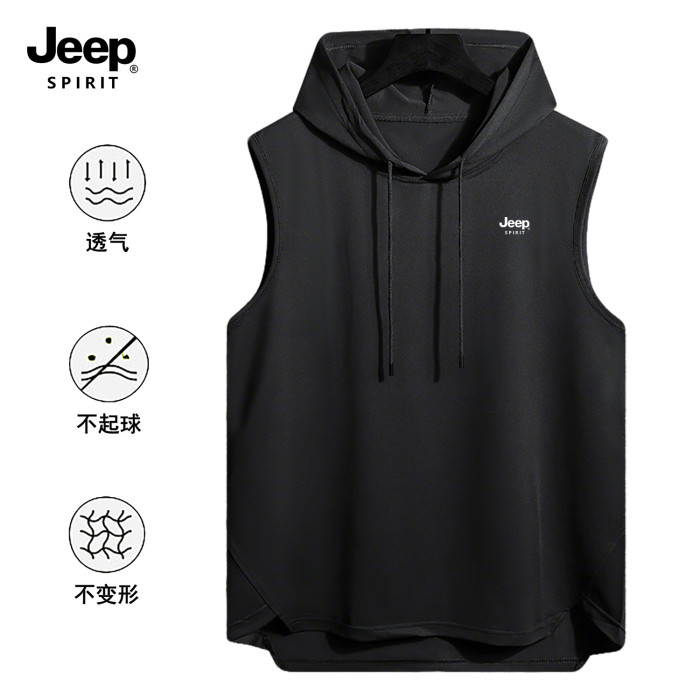 JEEP SPIRIT吉普連帽背心男士夏季新款戶外休閒運動速乾透氣無袖
