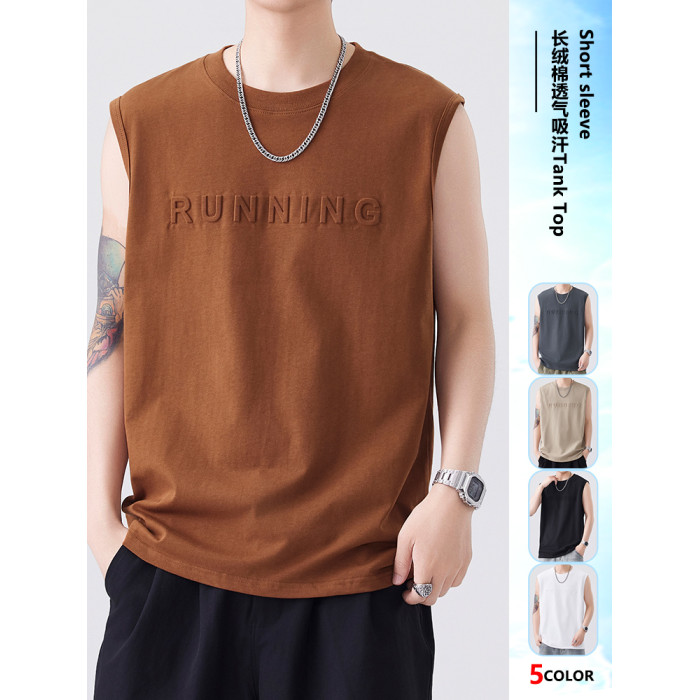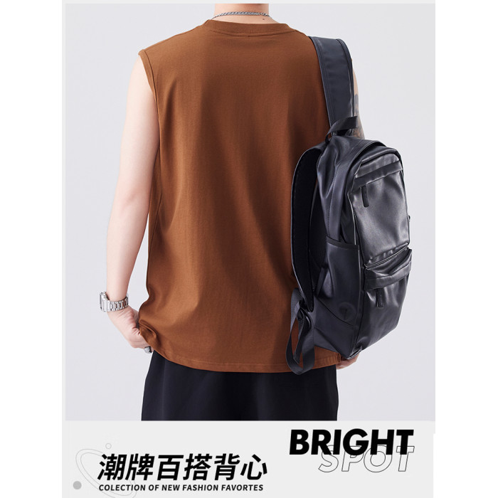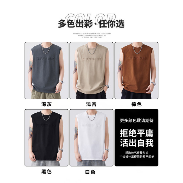 啄木鳥美式運動背心男士夏季寬松無袖坎肩純棉短袖t恤衫男款夏天