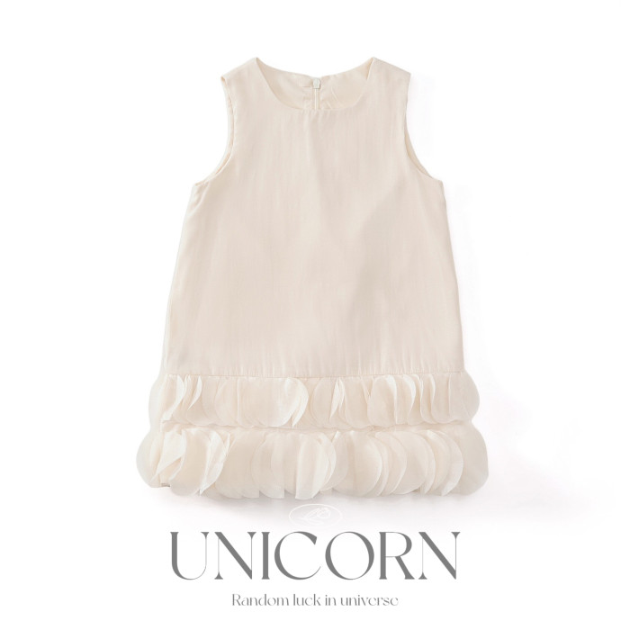 UNICORN女童25年夏季法式新款花邊公主裙時尚背心裙生日禮服裙