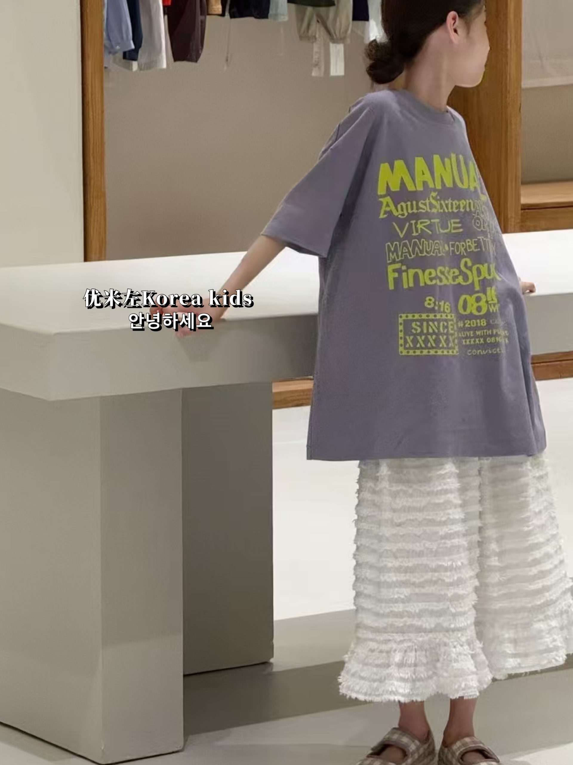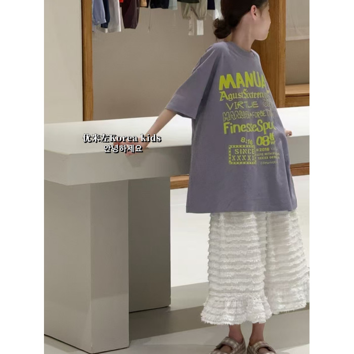 女童短袖T恤2025新款兒童夏裝半袖童裝女童夏季字母上衣洋氣潮牌