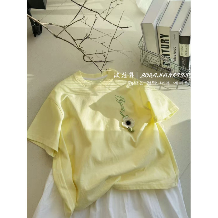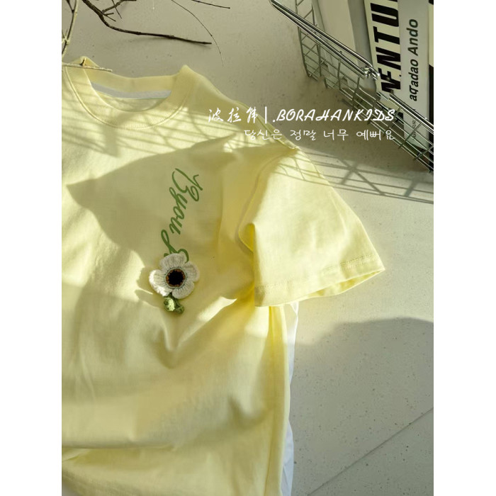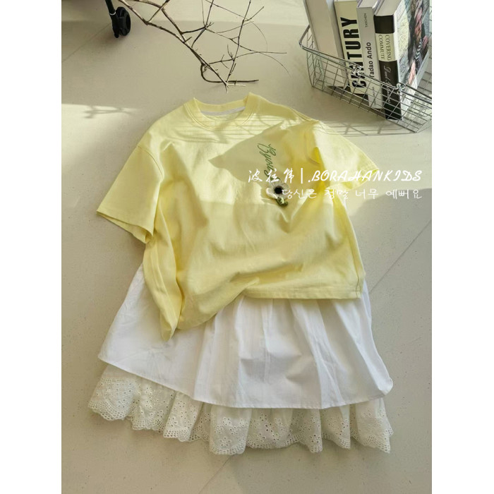 波拉韓女童短袖夏季兒童洋氣T恤2025新款中大童寬松半袖t休閒上衣