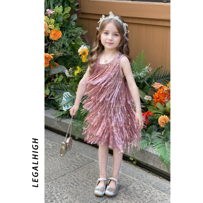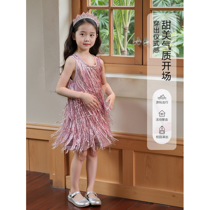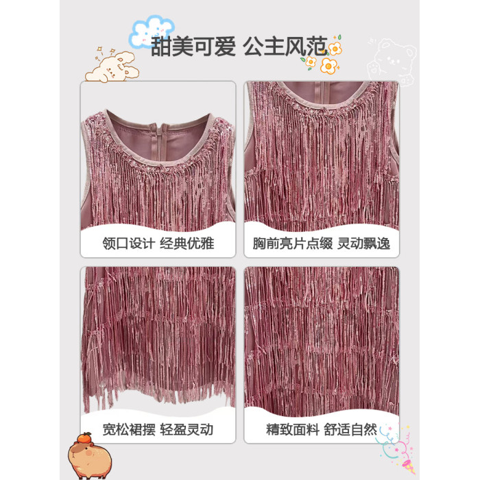 【品牌】夏季女童流蘇閃閃背心裙連衣裙高級兒童生日禮服公主裙