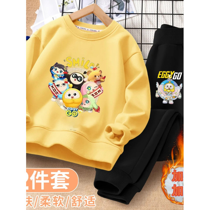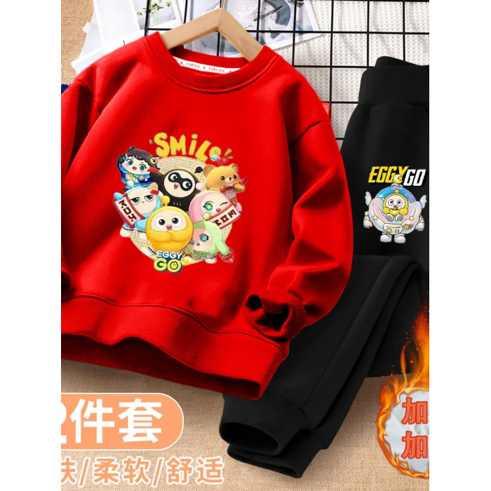 加絨保暖兒童衛衣套裝2025新款蛋仔派對衣服男童休閒衛衣兩件套冬