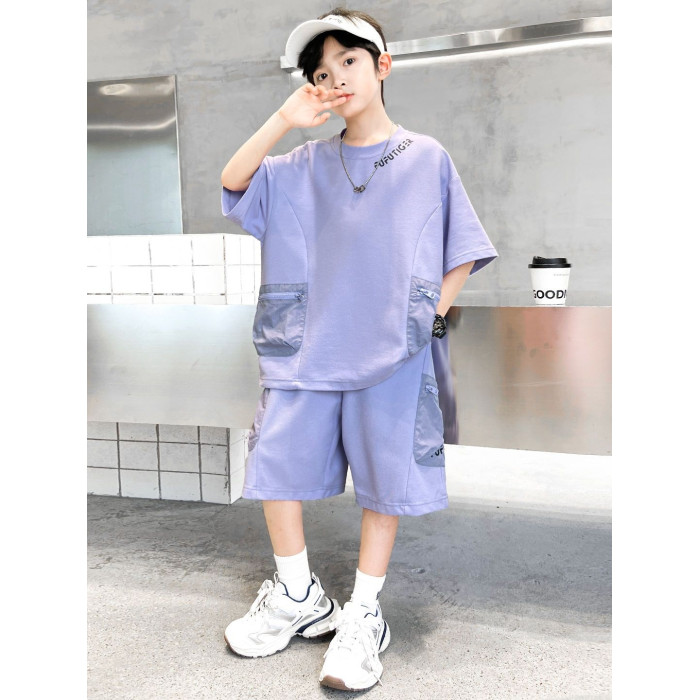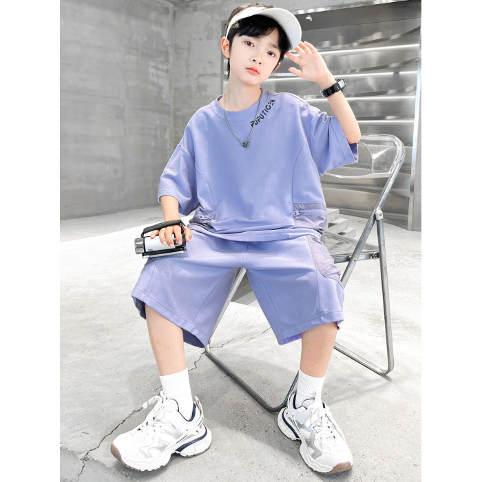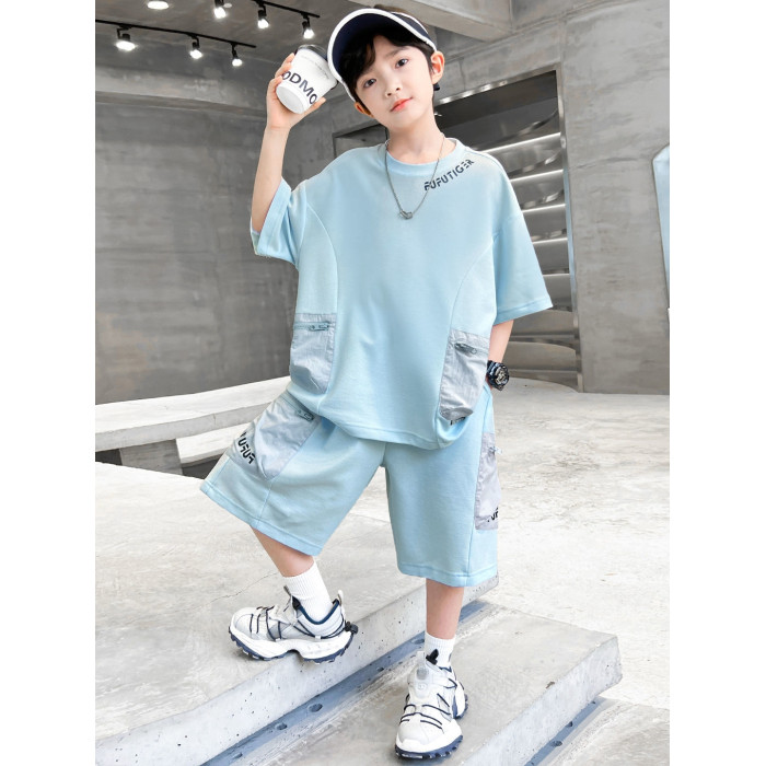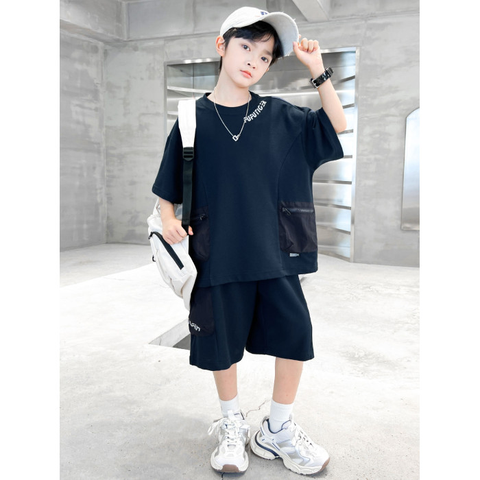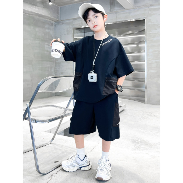 安哼安哼男童夏款套裝2025新款夏季寬松T恤衫中大兒童男孩七分褲