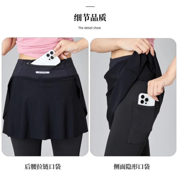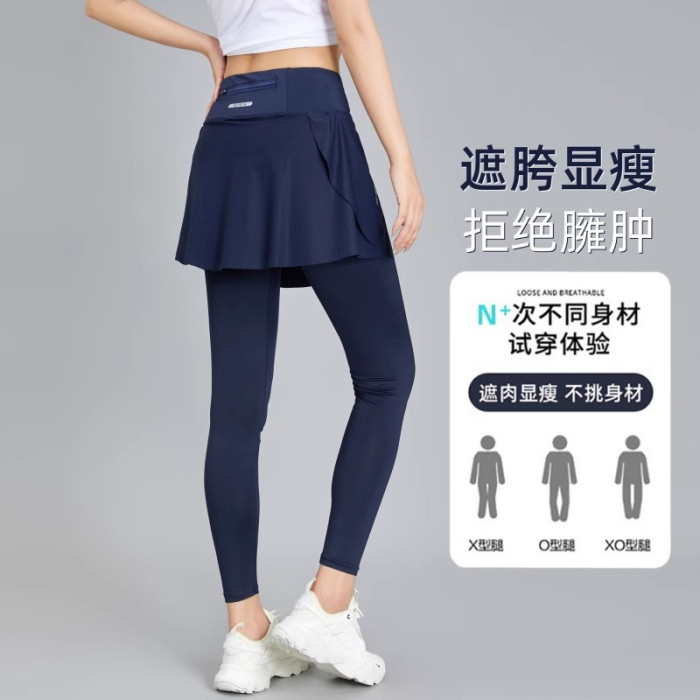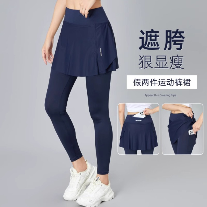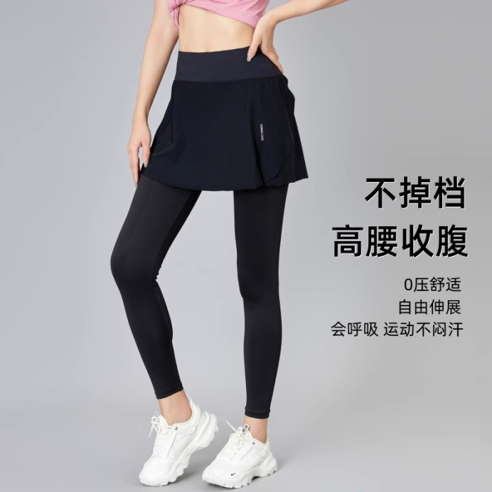 香港假兩件運動褲裙女夏季2025新款速乾緊身提臀瑜伽褲透氣健身褲