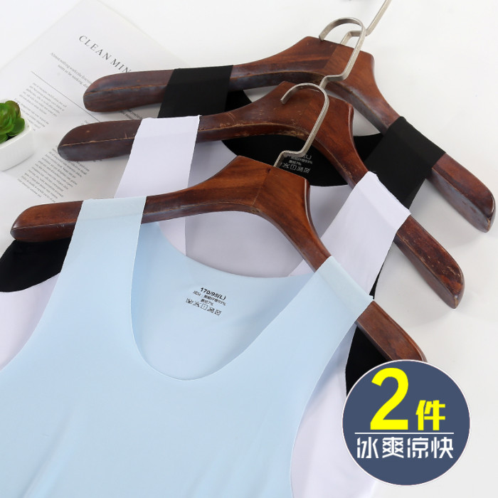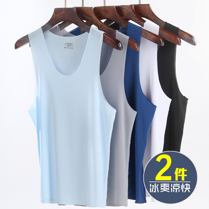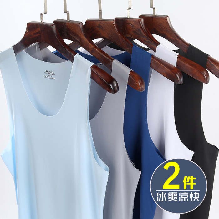 無痕冰絲背心男夏季薄款無袖T恤健身運動速乾上衣圓領窄肩汗衫男