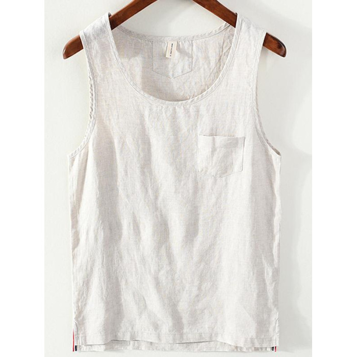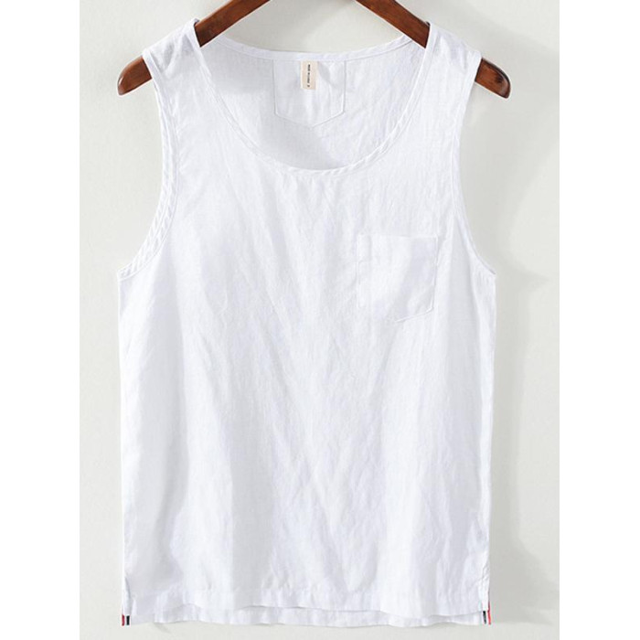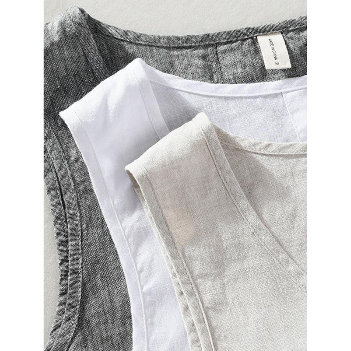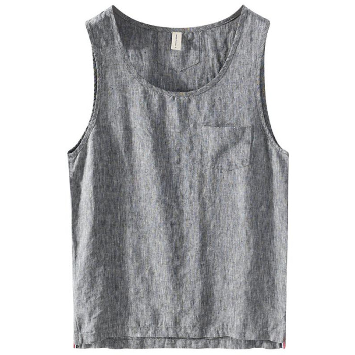 夏季透氣薄款男士亞麻無袖背心男寬松運動汗背心跑步健身棉麻坎肩