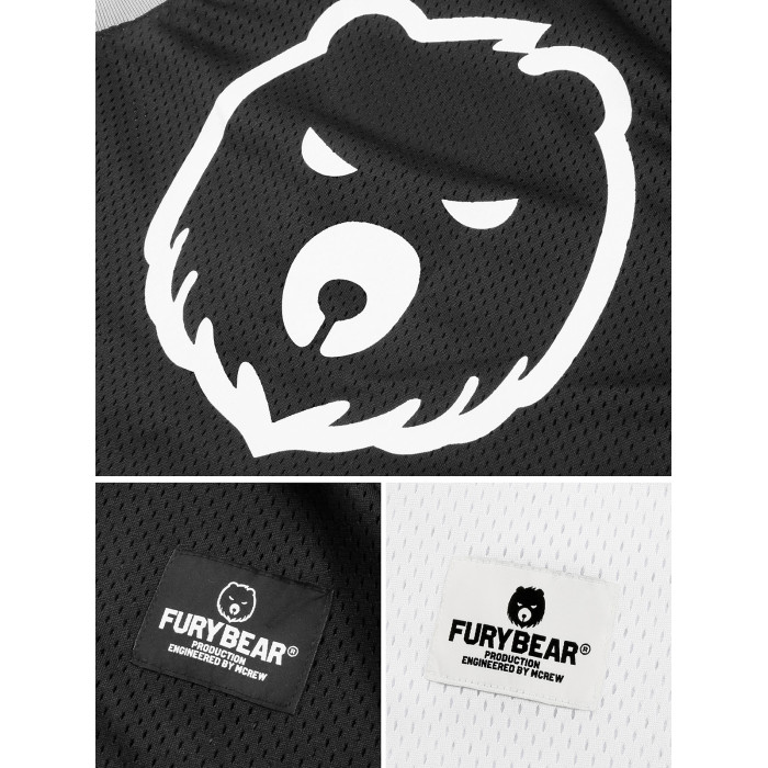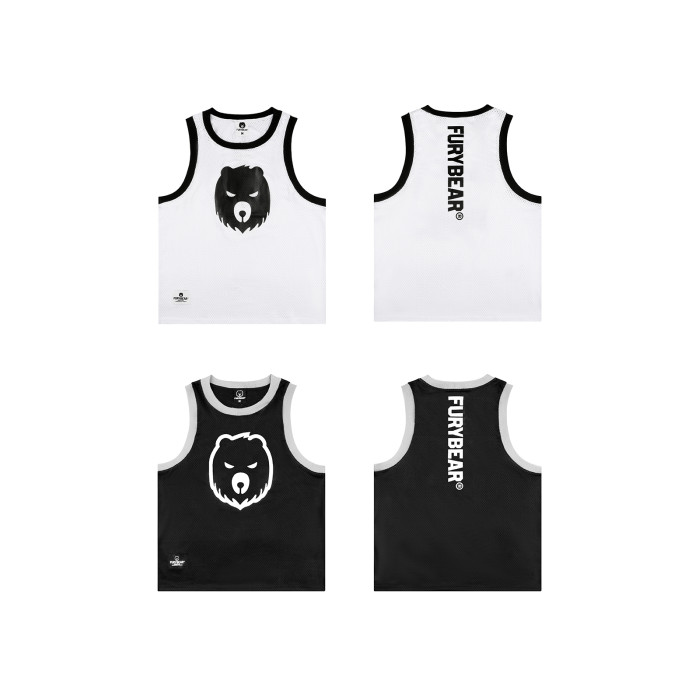 FURYBEAR 熊怒印花白色黑色速乾網眼健身運動籃球背心