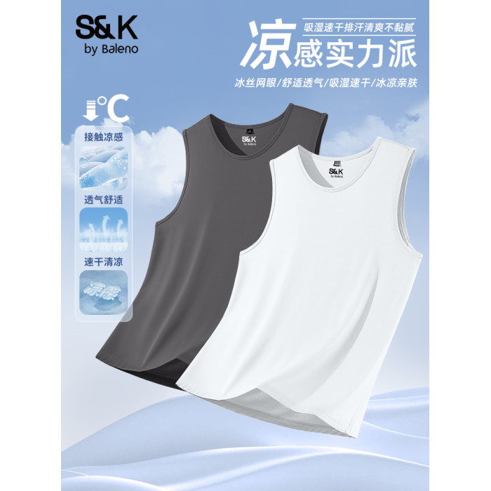 班尼路S&K運動背心男款夏季冰絲網眼速乾籃球健身無袖男T恤坎肩男