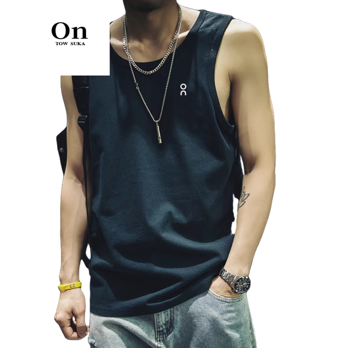 ON TWO SAKU無袖t恤純棉背心寬松坎肩潮牌外穿短袖運動健身上衣