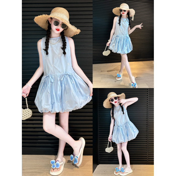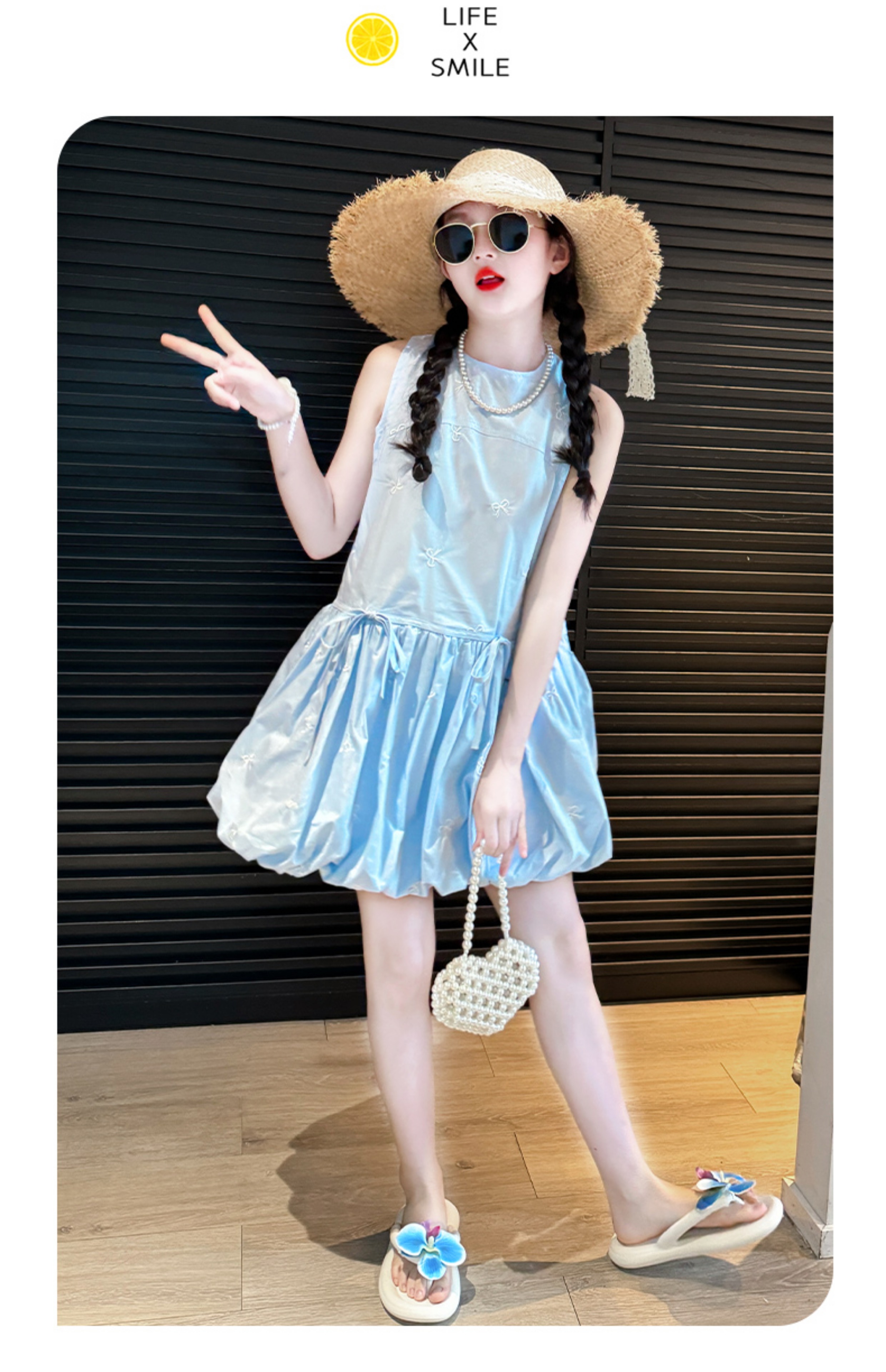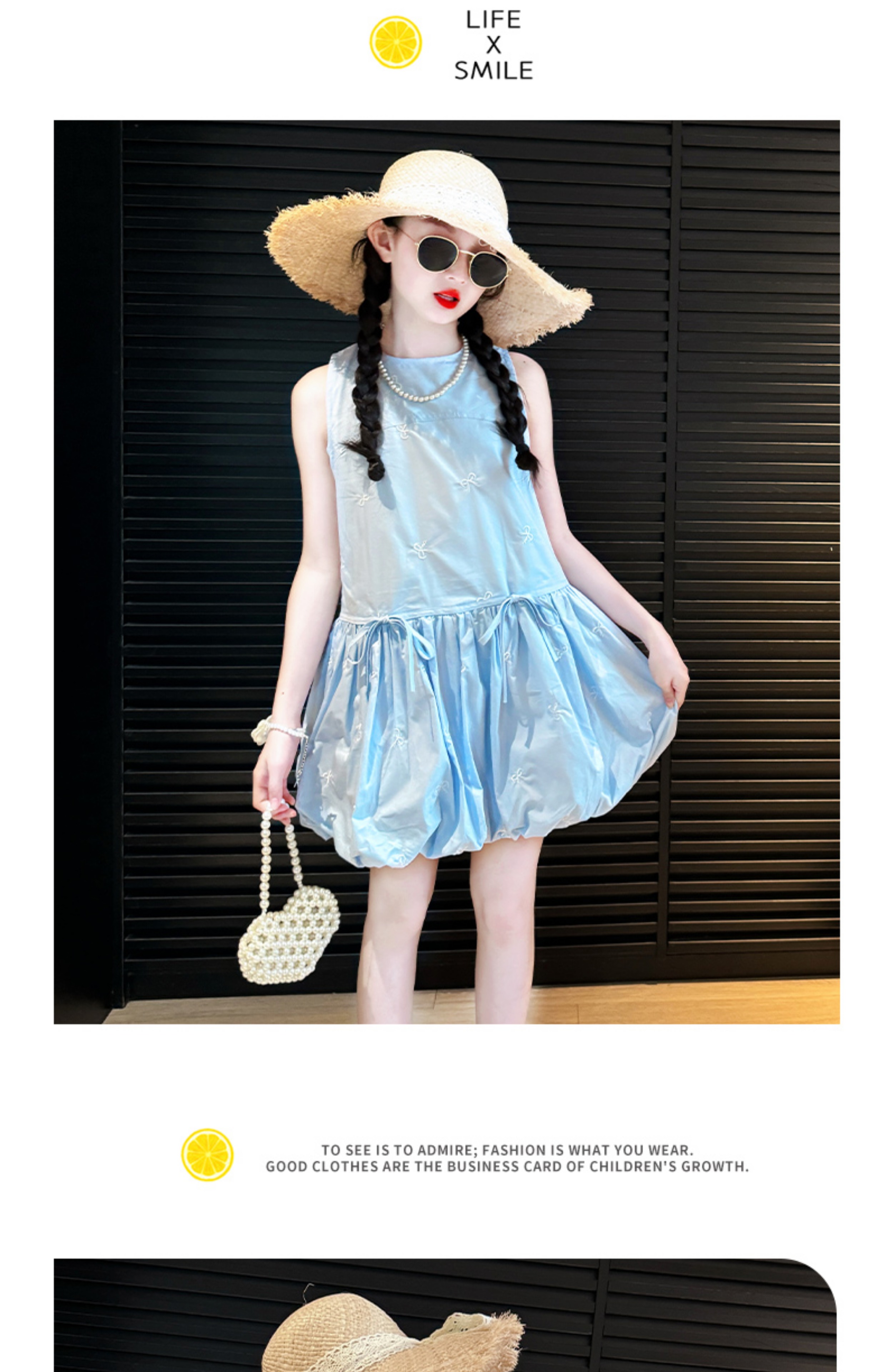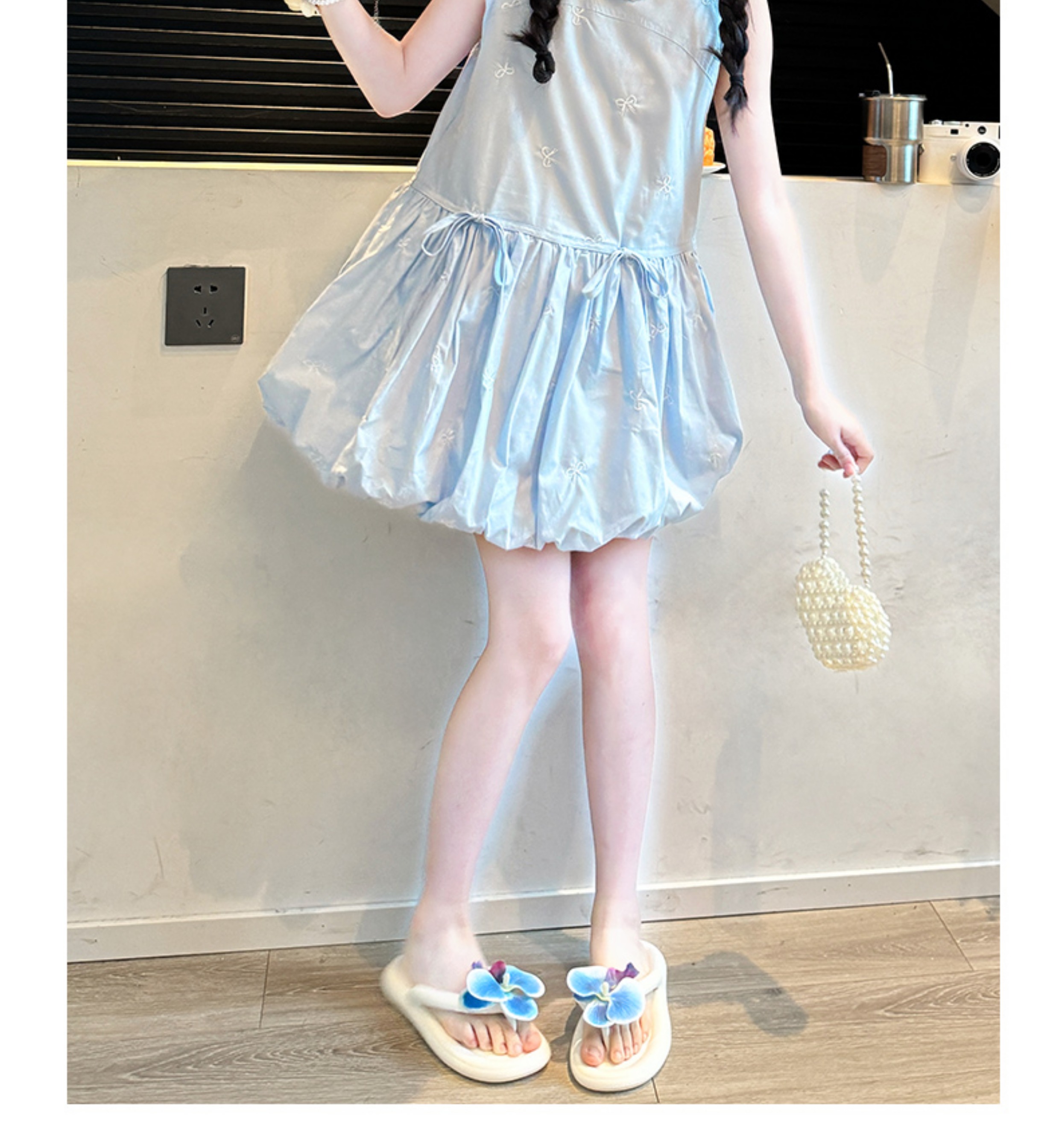 英國Next Svip藍色裙子女童連衣裙花苞裙夏2025新款女大童公主裙