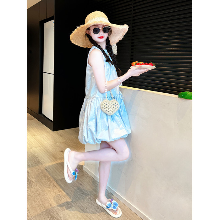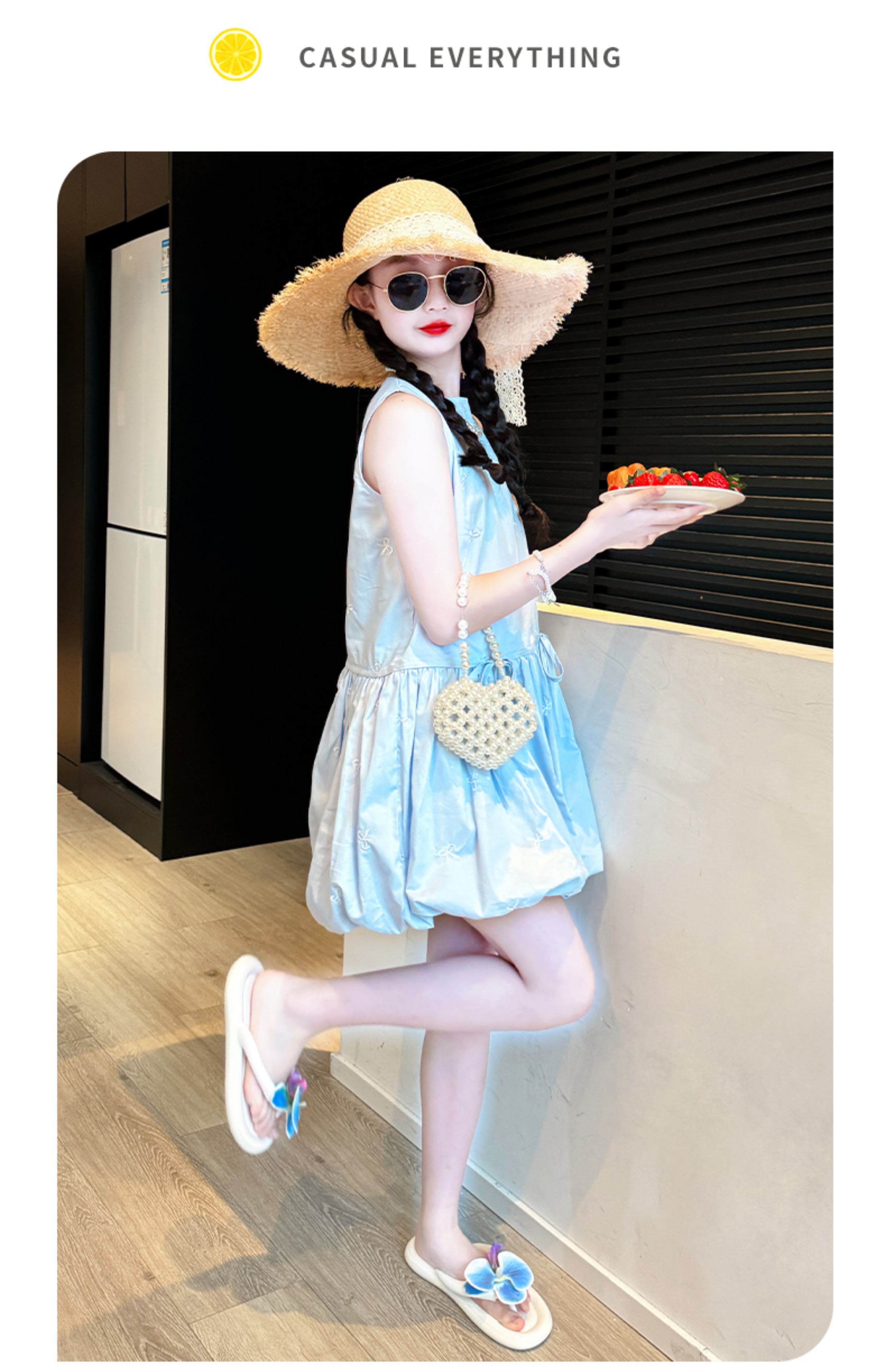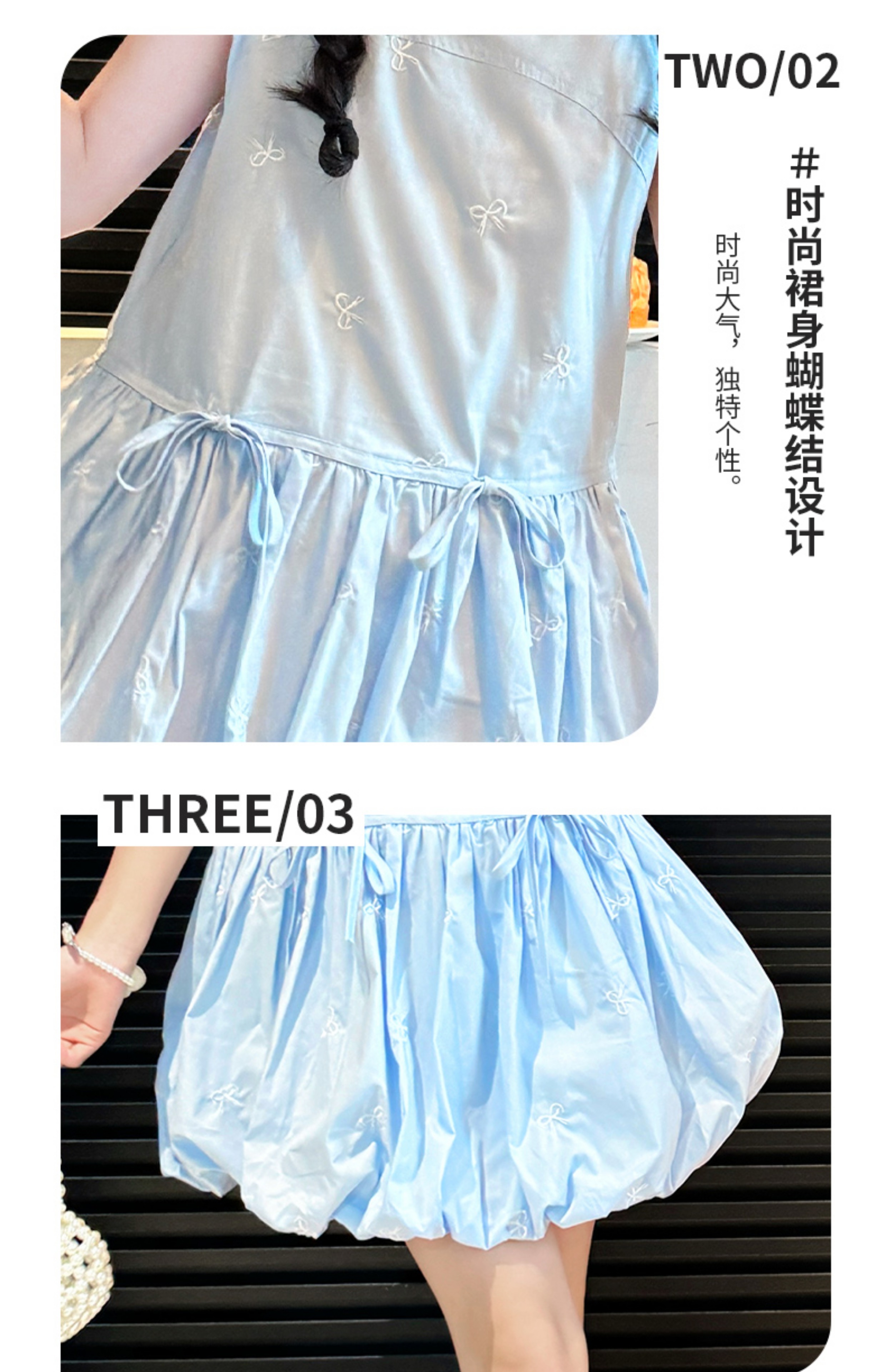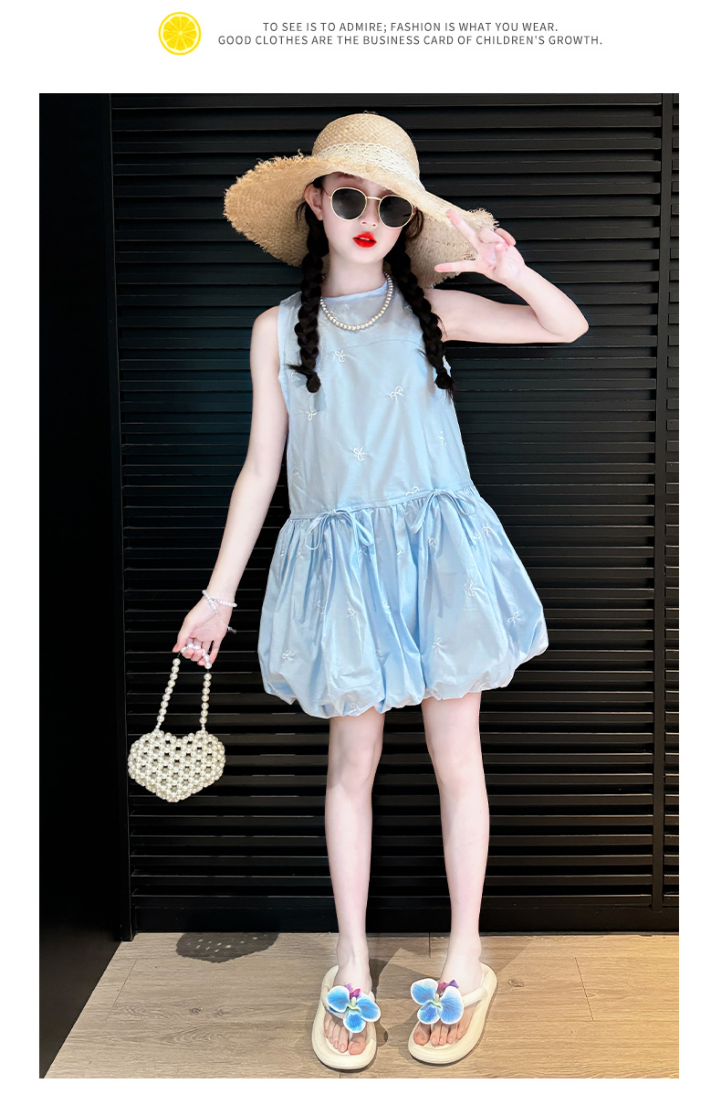 英國Next Svip藍色裙子女童連衣裙花苞裙夏2025新款女大童公主裙