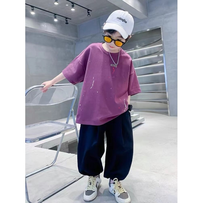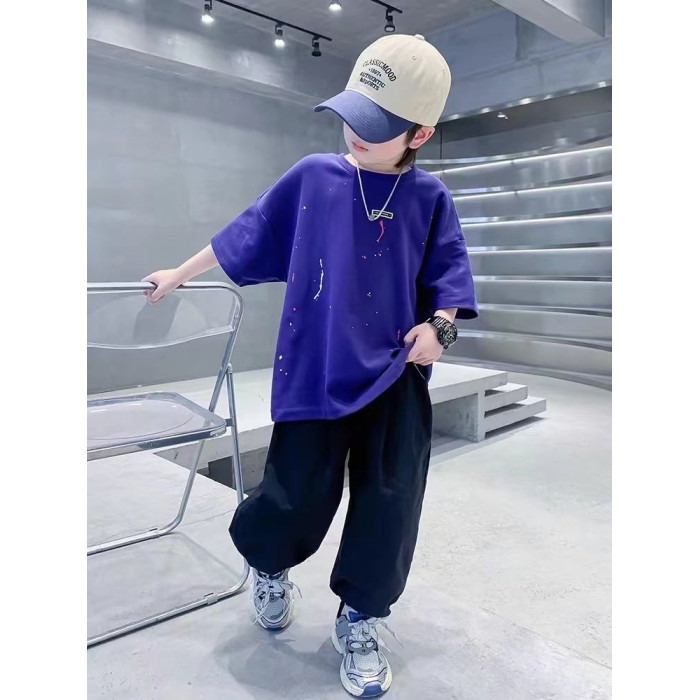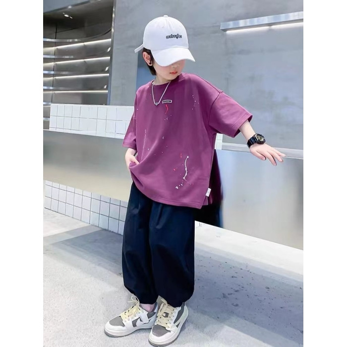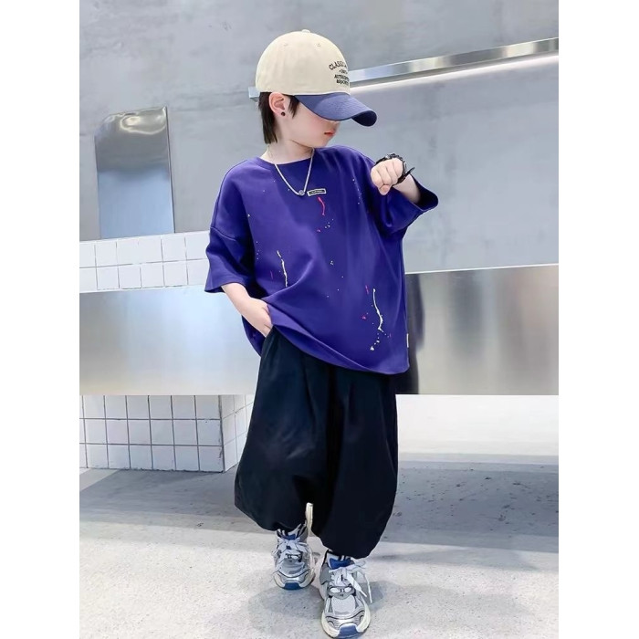 安哼安哼痞帥男童短袖套裝夏季潮款2025新款中大兒童夏裝半袖九分