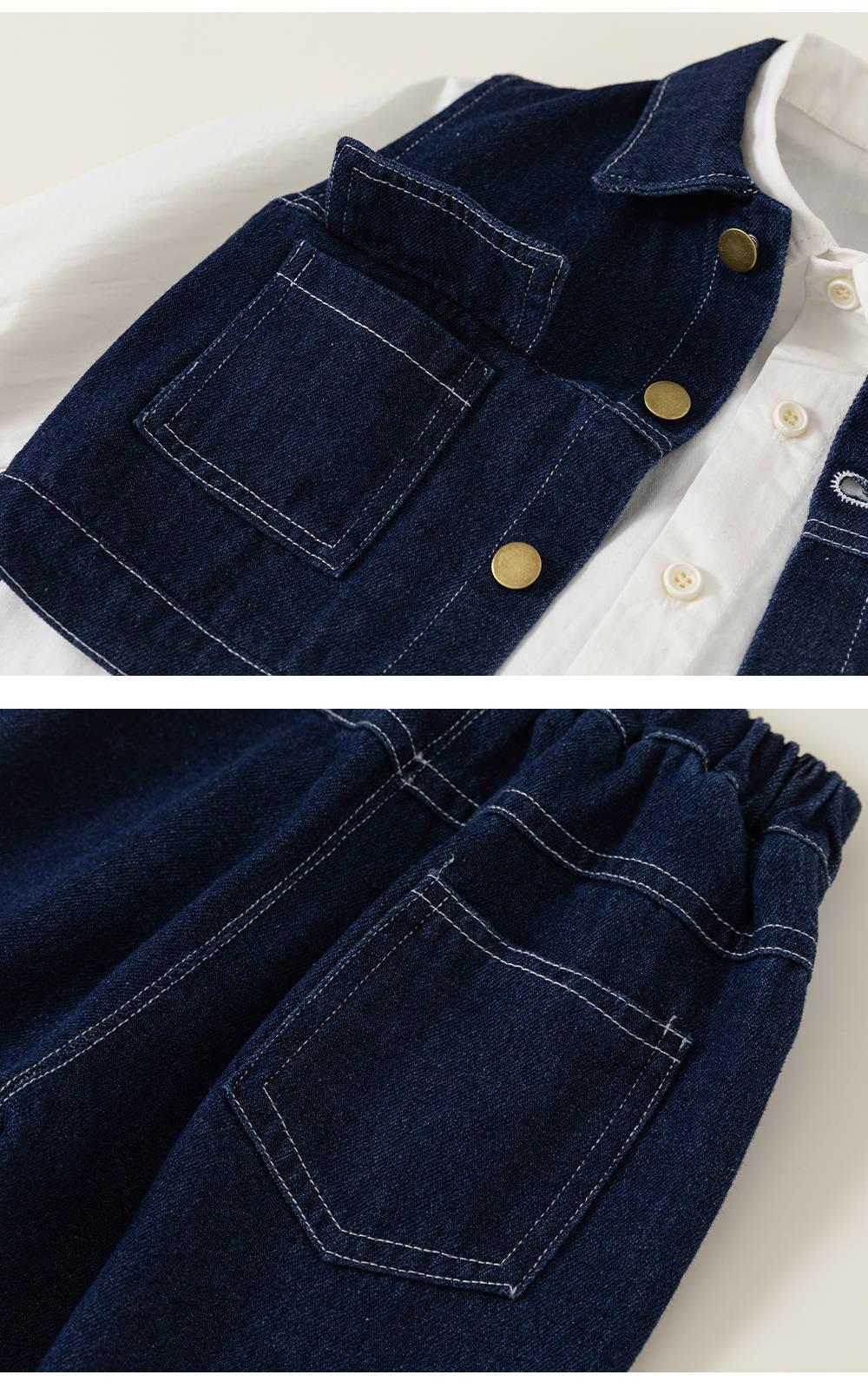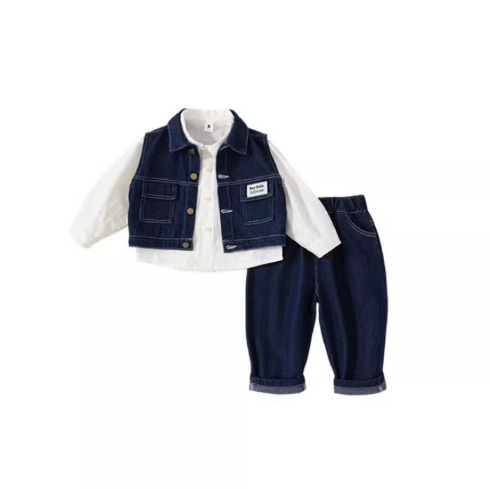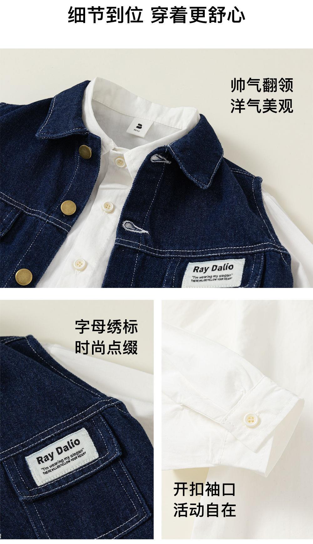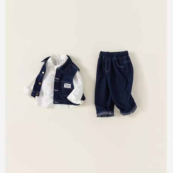 英國NEXT IGPP男童春秋季套裝洋氣牛仔馬甲白色襯衫牛仔褲三件套