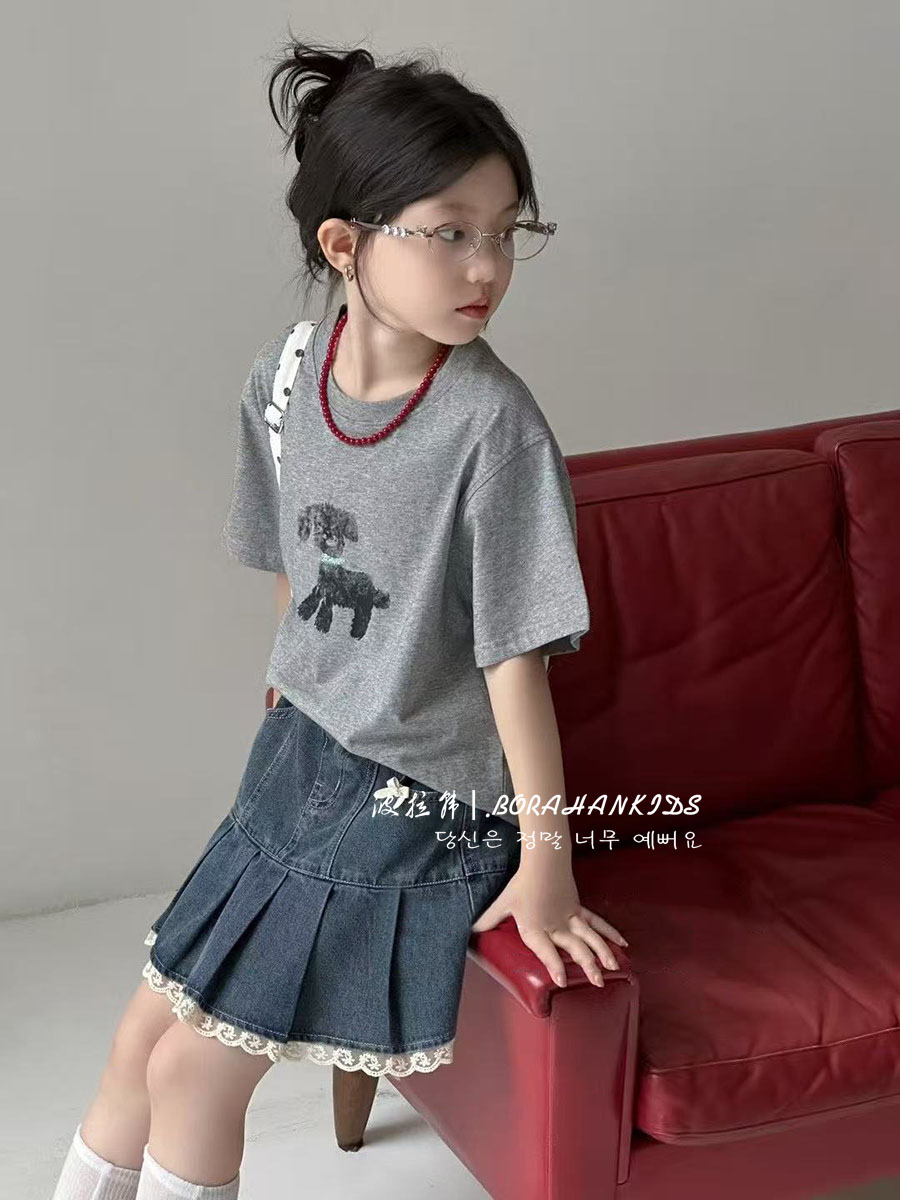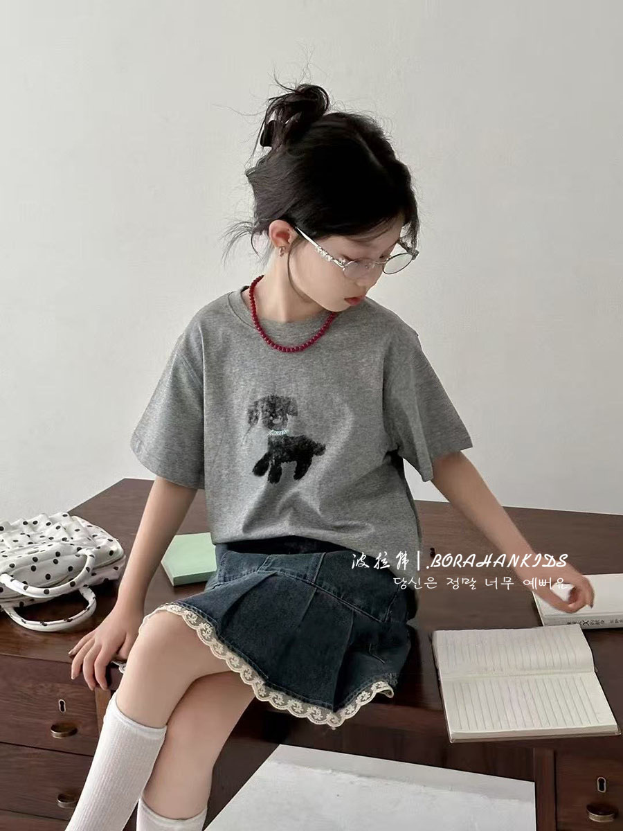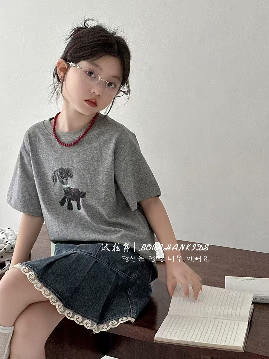 波拉韓女童短袖新款T恤2025兒童夏季純棉上衣小女孩半袖t圓領體恤