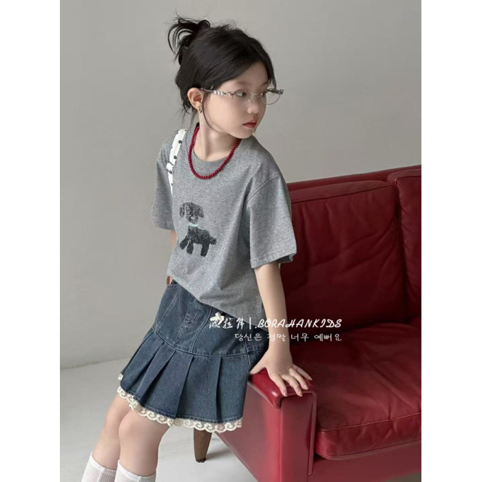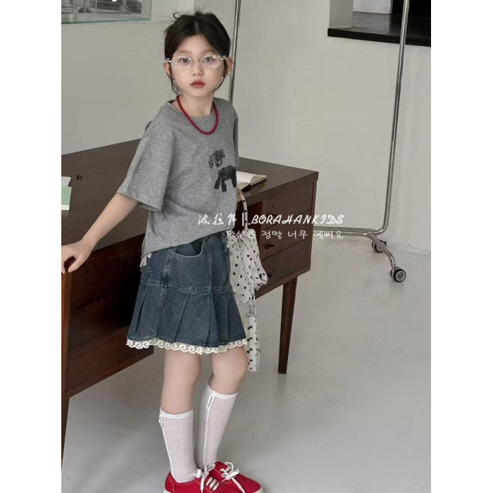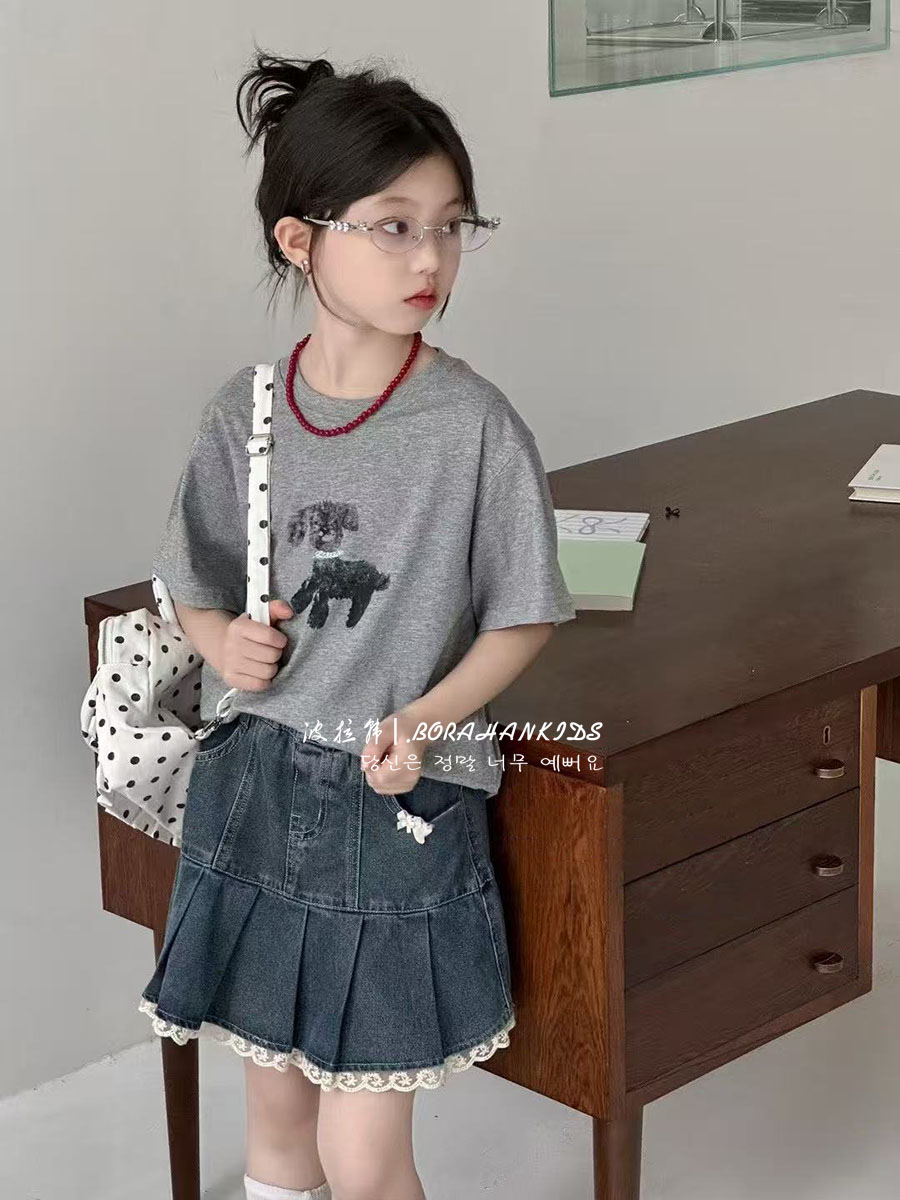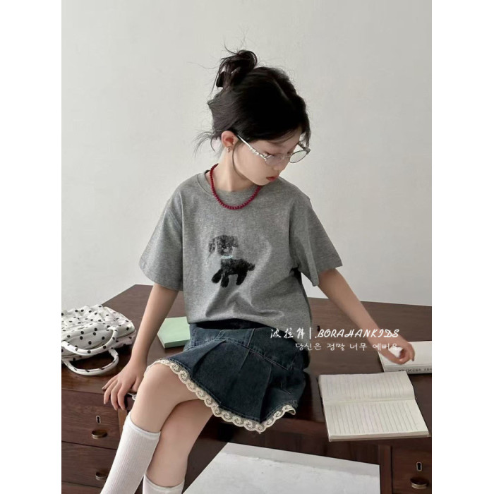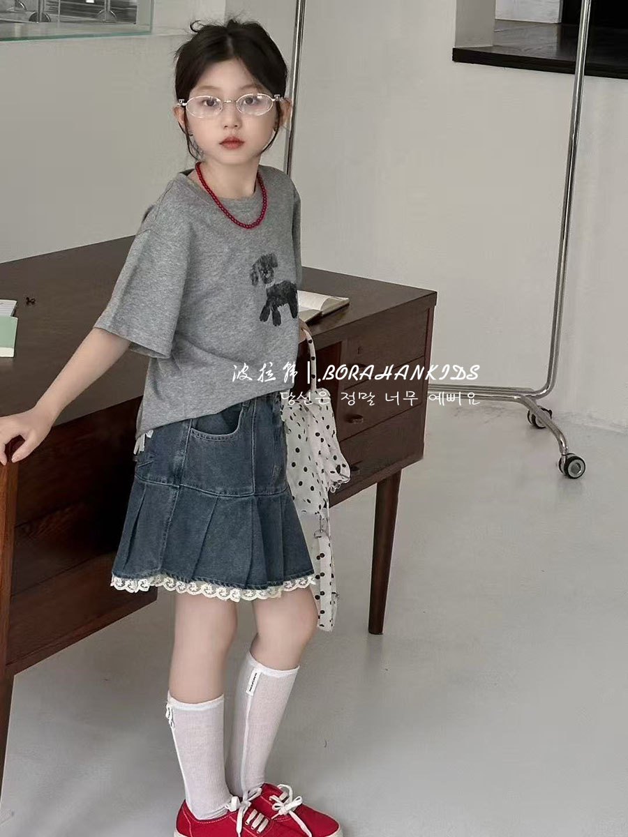 波拉韓女童短袖新款T恤2025兒童夏季純棉上衣小女孩半袖t圓領體恤
