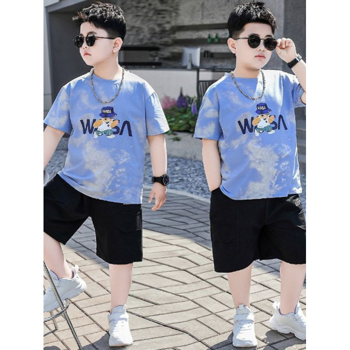 淺藍色【卡通熊】短袖套裝
