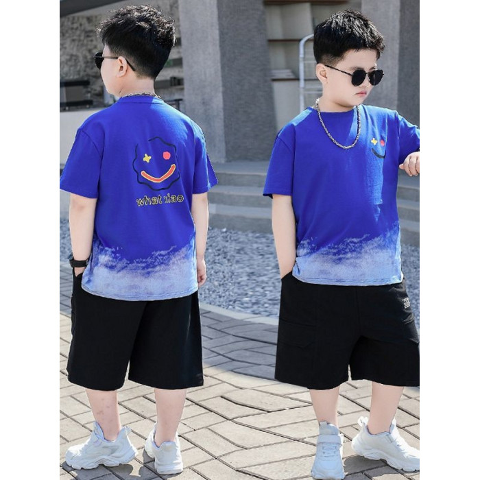 深藍色【笑臉】短袖套裝