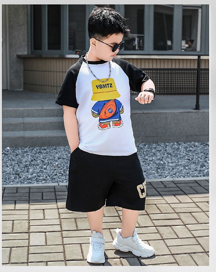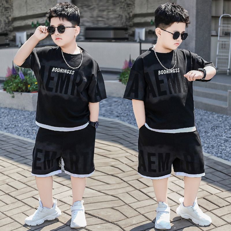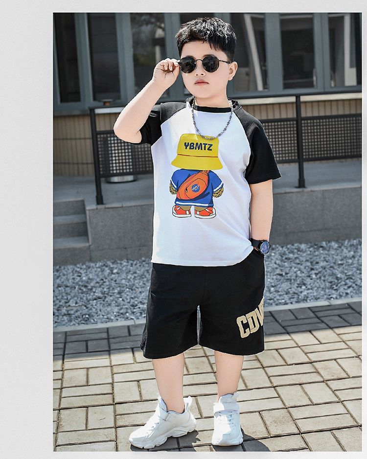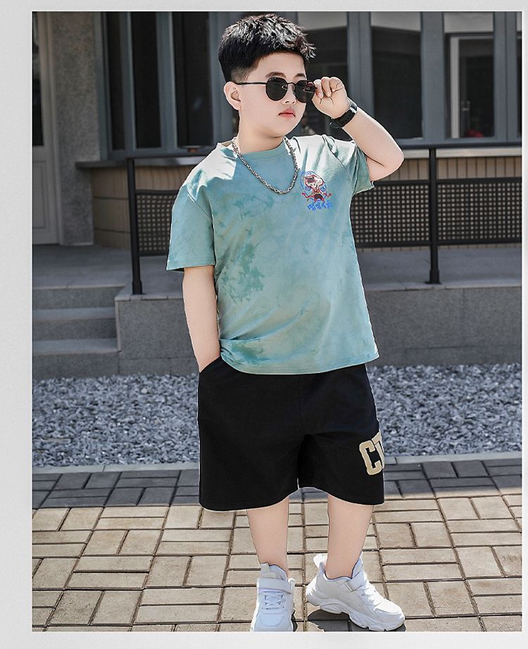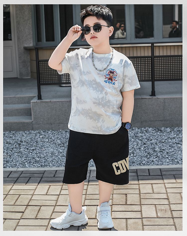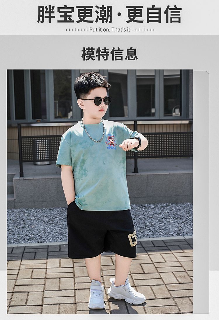 安哼安哼胖童裝夏季套裝小胖墩7-15嵗男童加肥加大寬松大碼短袖短