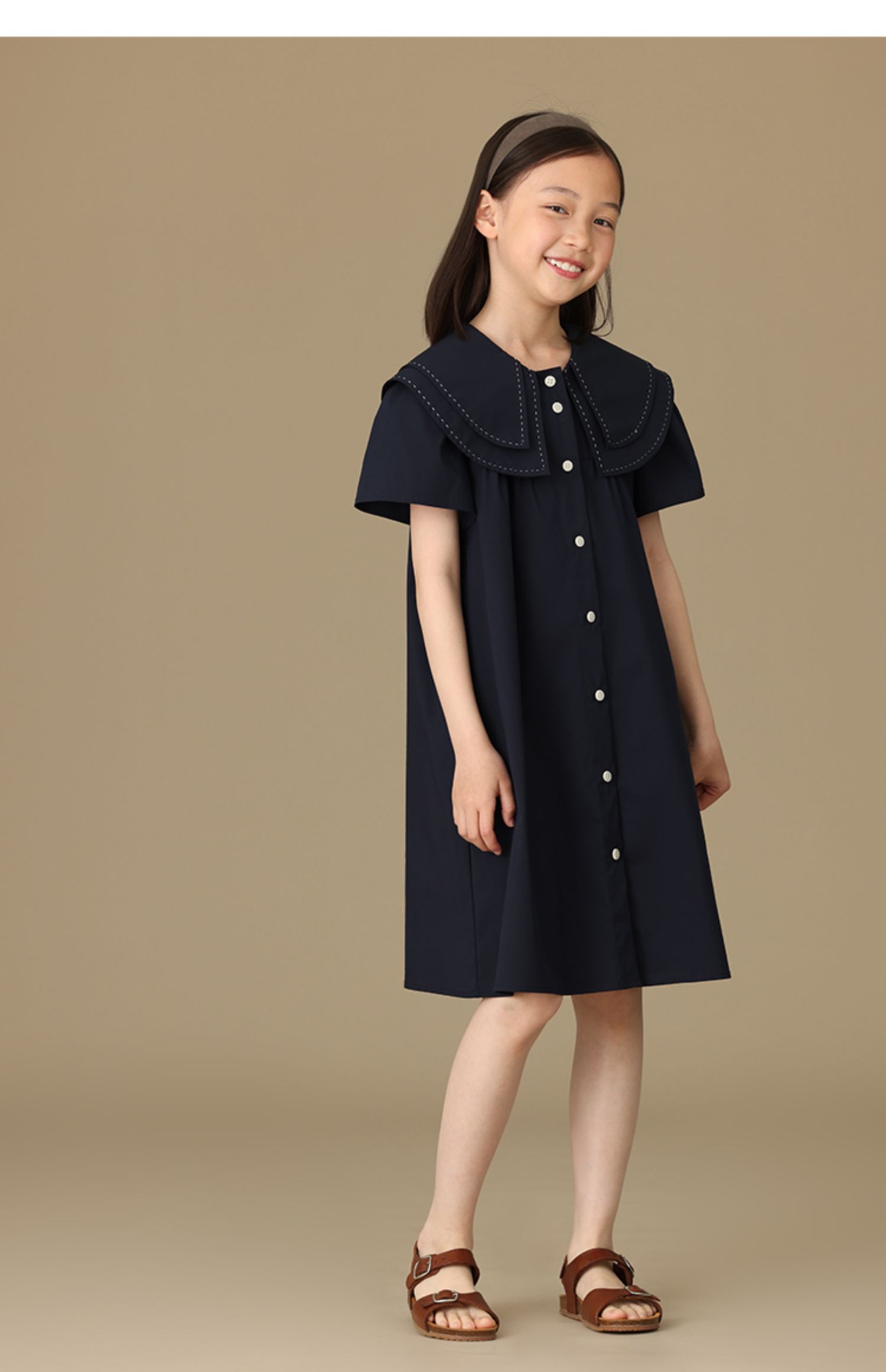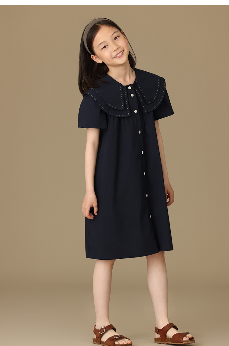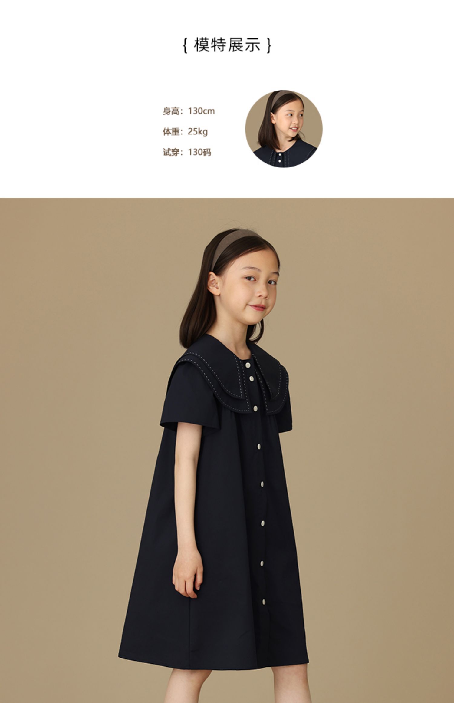 哈齒童裝兒童夏裝裙子中大童純棉復古學院風休閒連衣裙女童夏季薄