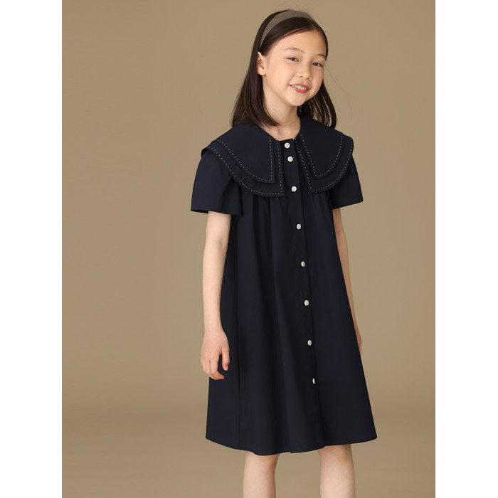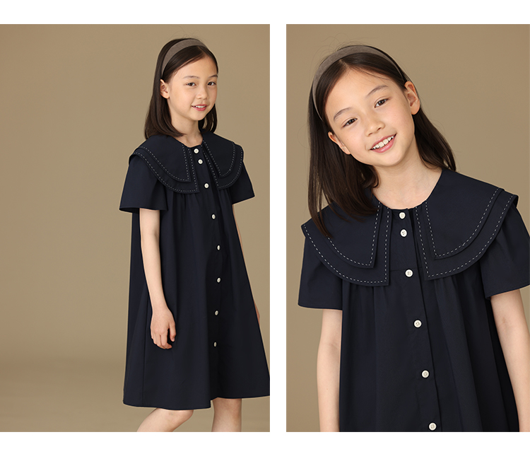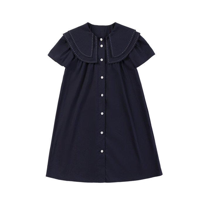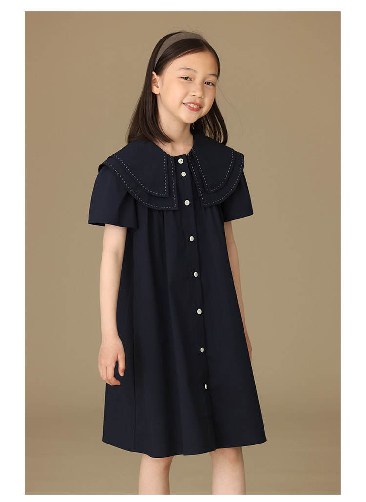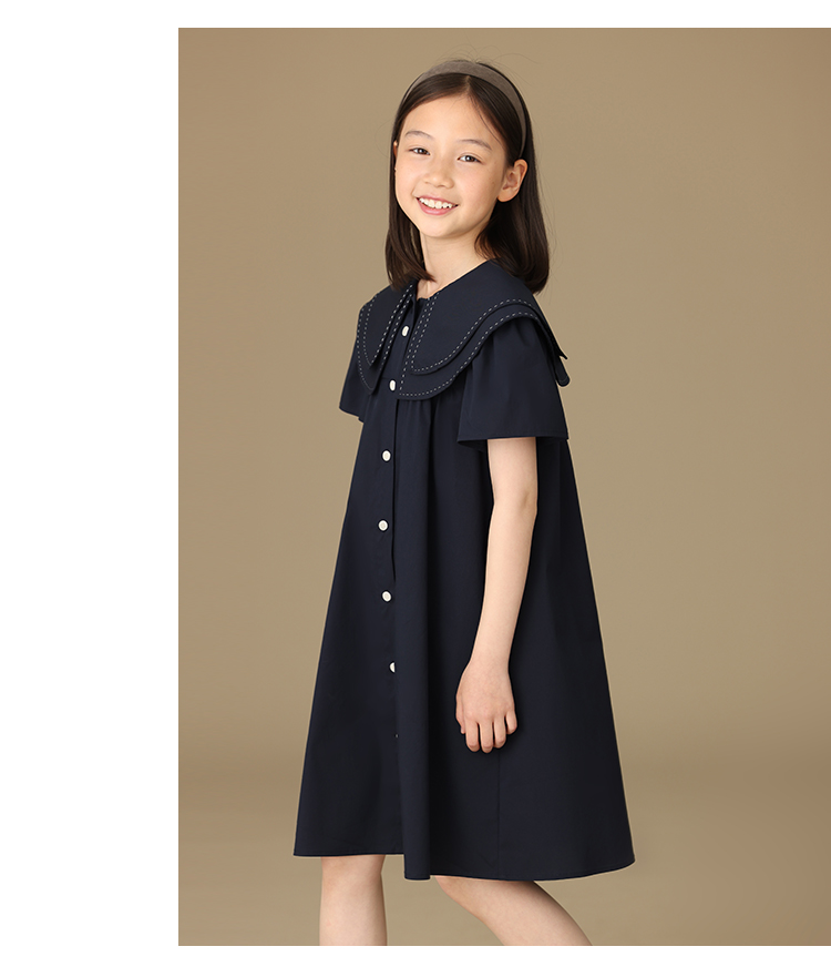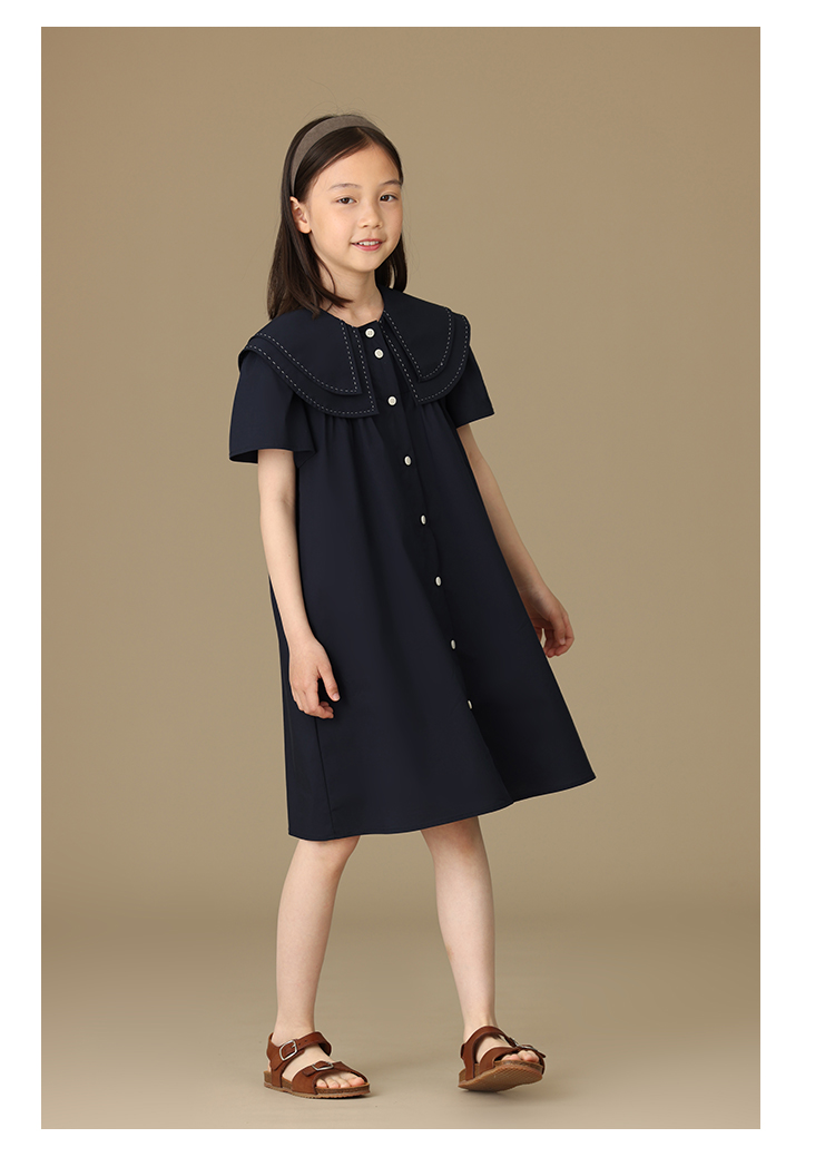 哈齒童裝兒童夏裝裙子中大童純棉復古學院風休閒連衣裙女童夏季薄